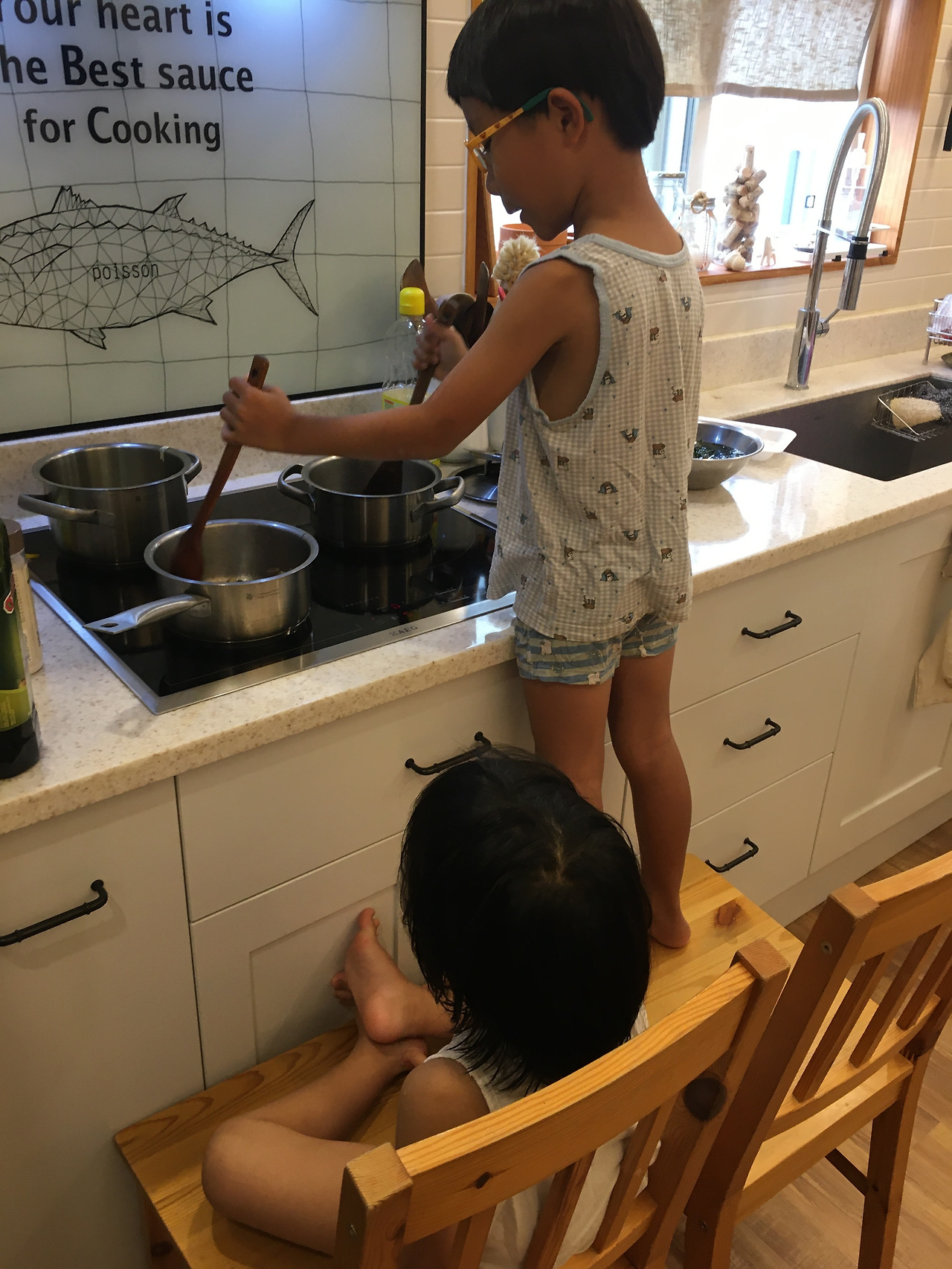 집에 와서 욕조에 뜨거운 물을 받아놓고 셋이서 한참을 앉아 있었다. 목욕을 했더니 피로가 좀 풀리는 것 같다. 애들도 덩달아 컨디션이 좋아졌다. 탄력을 받아 바로 저녁 준비에 돌입했다.
