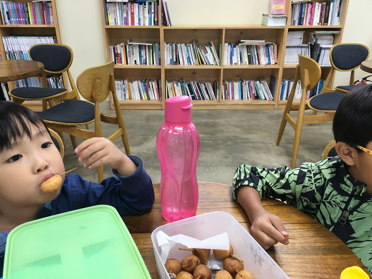 점심시간이 되어서 싸온 도시락을 꺼내서 먹었다. 은우는 엄청 먹어댔는데 유민이는 노는데 집중하느라 생각보다 적게 먹었다. ‘핫도그 내장’도 의외로 인기가 많았다.