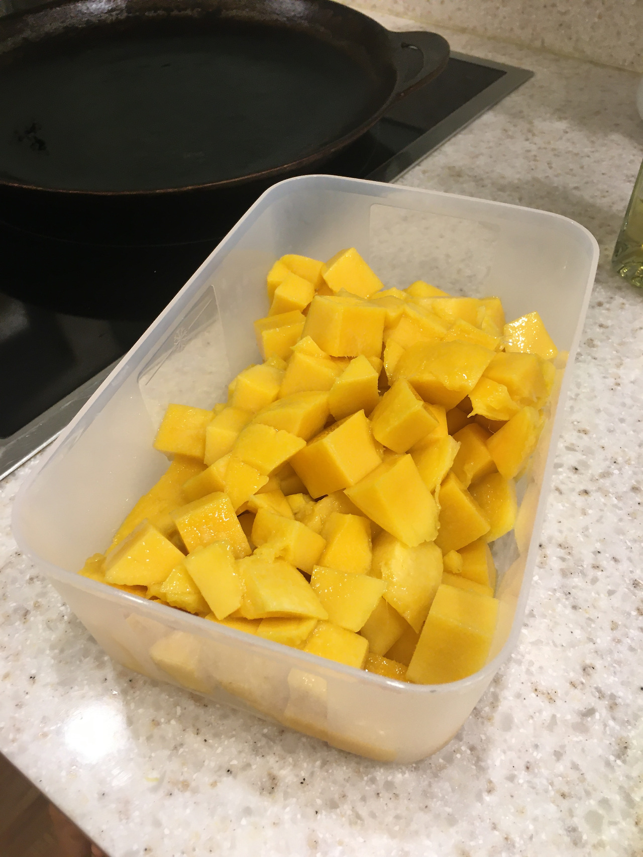신나서 오두방정을 떠는 은우. 망고는 썰어놓고 보니 양이 제법 된다. 당도도 좋고 전반적으로 2만 원의 값어치는 하는 것 같다. 은우는 어제 먹다 남긴 미쯔를 우유에 타 먹고는 망고도 한 사발 배불리 먹었다.