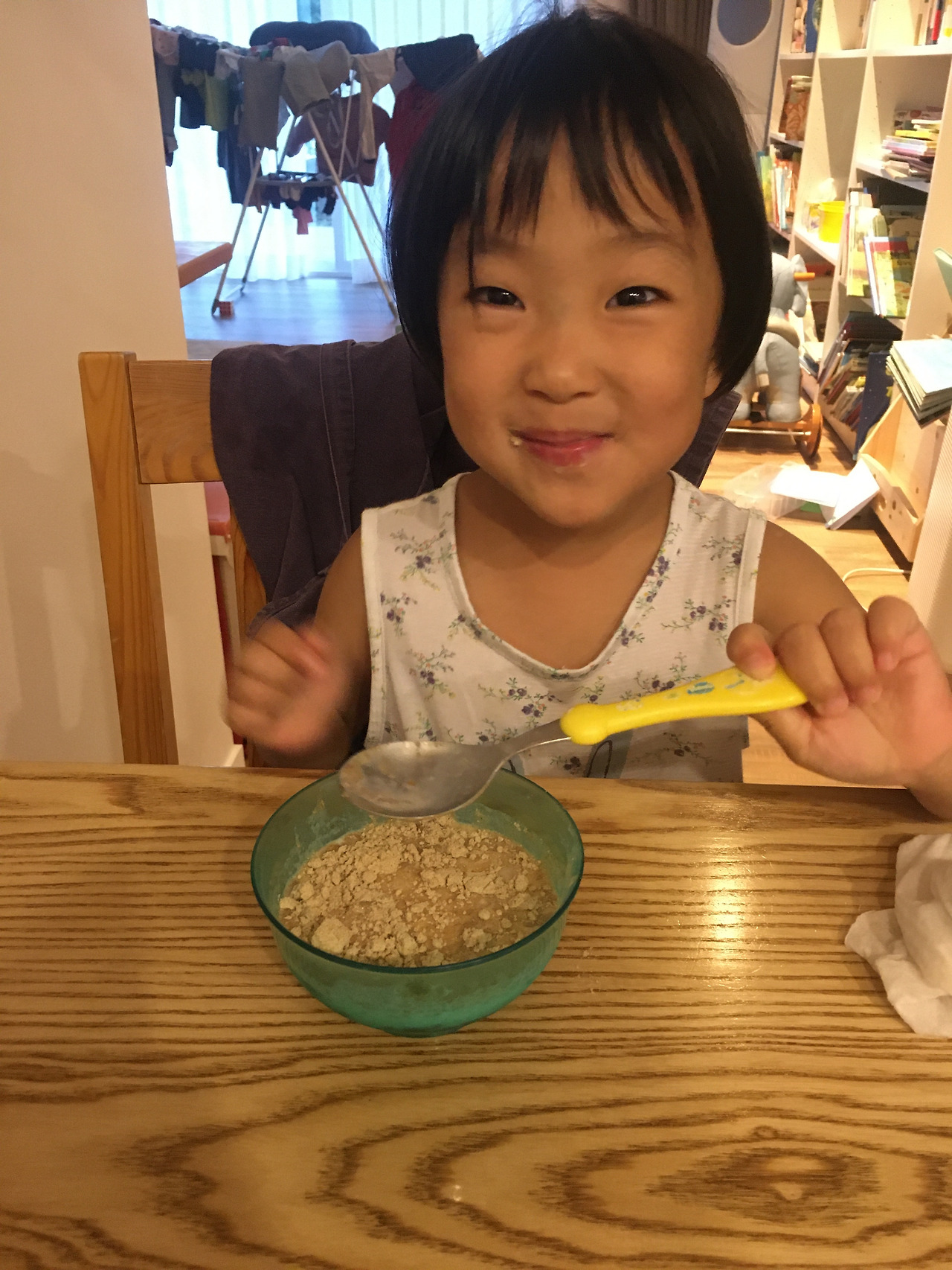 뭐 먹고 싶냐고 물어보니 미숫가루를 달라는 유민이. 냉장고를 한참을 뒤져서 겨우 미숫가루를 찾아 우유에 타 줬다. 유민이는 미숫가루를 먹으며 사랑스러운 눈빛으로 말했다.