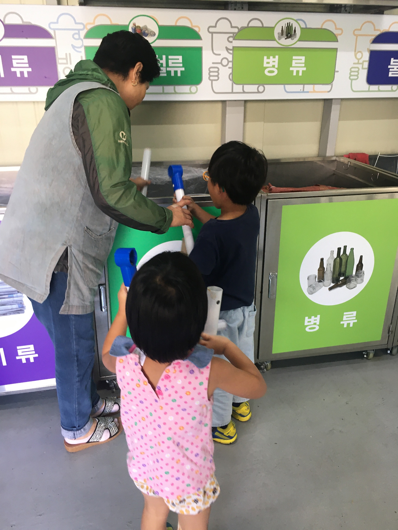 센터에 도착해서는 은우가 도와줘서 수월하게 쓰레기를 버릴 수 있었다. 센터에 있는 분리수거 도우미 분이 은우가 분리수거를 하는 모습을 보며 칭찬을 하니 갑자기 유민이도 불이 붙어서 의욕적으로 분리수거를 했다. 아이들에게는 아빠의 칭찬보다 첨 보는 사람의 칭찬이 더 강력한 것 같다.