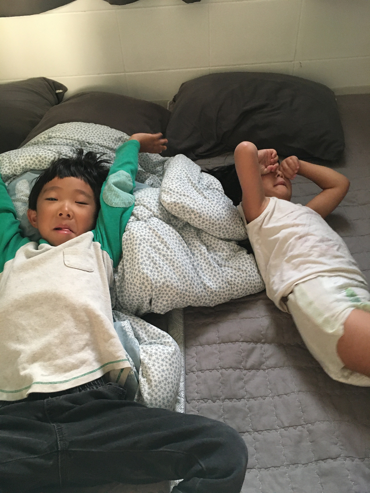 아빠 : 자, 이제 이불 개자~