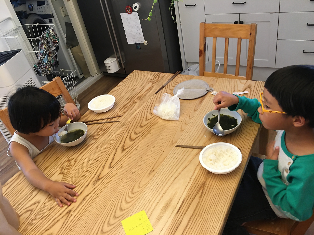 애나 어른이나 역시 집이 최고다. 어제 먹고 남은 미역국을 데워서 밥을 말아서 뚝딱 먹었다. 애들이 너무 배고파해서 미처 밥할 시간이 없었기에 방금 사온 햇반을 일단 먹였다. 또다시 저 머나먼 타국 땅에서 아내의 목소리가 들리는 것 같다. '자기야! 밥 압력솥에 하면 금방 하는데~ 햇반 안 좋은 거 알잖아~'