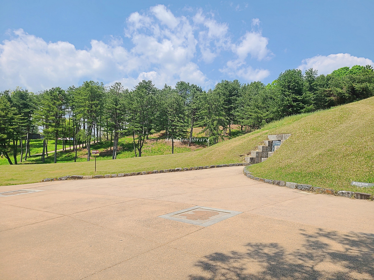 물 한 모금 마시고, 정자 형태의 휴게실 마루에 잠시 누워 절반쯤의 하늘을 시야에 담는다. 땅 아래 묻힌 시간과 하늘에 흐르는 시간 사이 잠시 숨을 고르며, 고요하지만 묵직한 울림을 주는 이곳을 내 마음 또 다른 빛깔의 이야기 조각으로 조용히 얹어둔다.