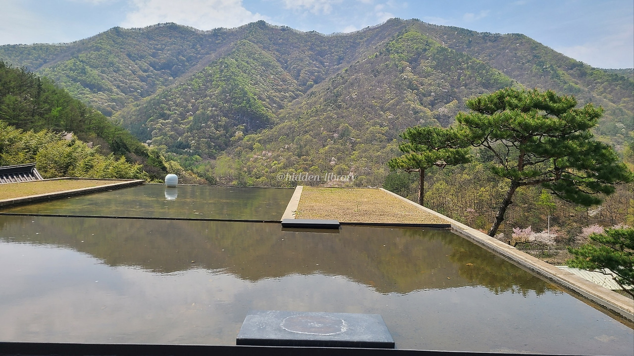 전시관을 나서면 차원 이동이 아닌가 싶은 계단 통로를 좁은 하늘을 보며 오르게 된다. 계단의 끝에서 뒤를 돌아보면 이 계단의 의도가 무엇인지 느낌이 온다. 호기심과 설렘 이후의 평온함, 그리고 감탄. 이토록 아름다운 지상 혹은 천상의 세계로 통하는 길이었다. 풍만하고 부드러운 능선과 각자의 곡선을 교환하는 한옥이 눈앞에 등장했다.