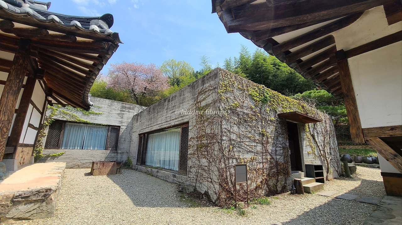 한옥들 사이에 이질감이 들 것 같지만 전혀 그렇지 않은 현대적 건물이 있다. '누드콘크리트 모던하우스'라는 이름의 미니멀 건축물인데, 주로 나무로 지어진 한옥과 달리 콘크리트 소재를 사용했다. 한옥과의 어울림을 위해 많은 고민을 했을 것이다. 콘크리트의 속성을 거의 그대로 살린 것도 목재를 그대로 사용하는 한옥 건축을 염두에 둔 것이 아닐까 싶다.