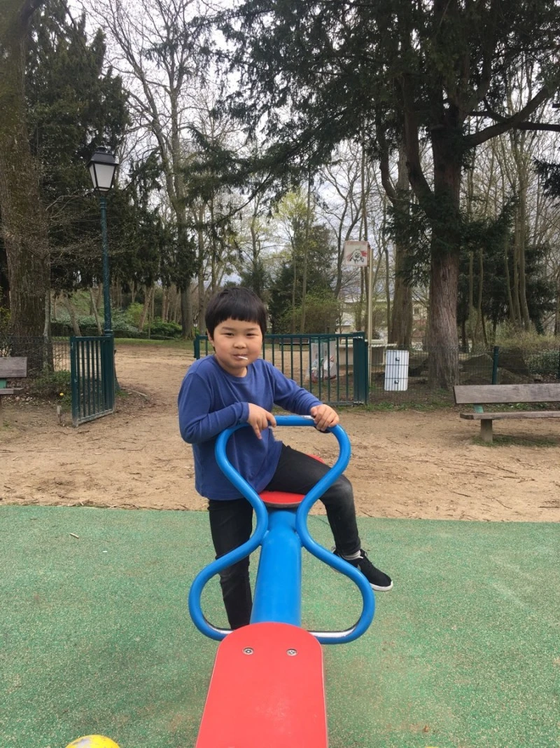 우리는 즐거운 식사를 마치고 동네 한 바퀴를 돌아보았다. 도로 뒤쪽으로 공원과 동네 놀이터가 있었고 놀이터를 둘러싼 영국과는 좀 다른 프랑스의 주택들도 구경했다.