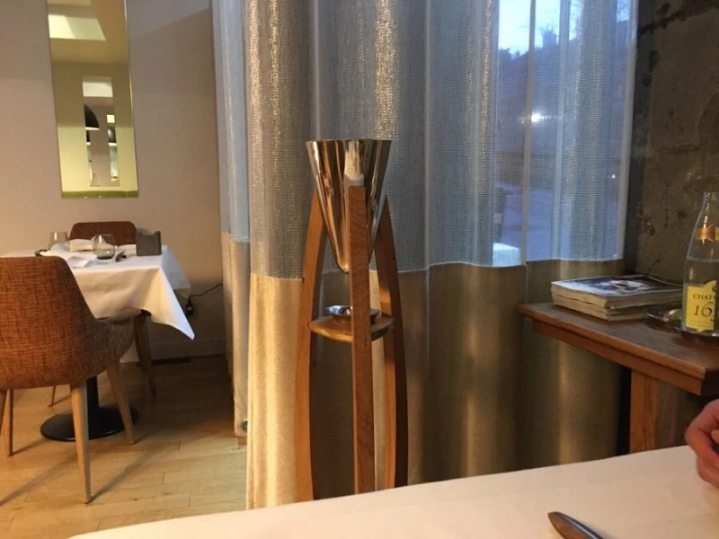 레스토랑 안에는 아직 손님이 없었다. 여느 파인 다이닝처럼 다림질이 잘 된 하얀 테이블보가 깔려있고 잘 정돈되어 있었다. 한코스가 끝날때마다 멋진 모양의 스크래퍼로 테이블을 정리해주었다.