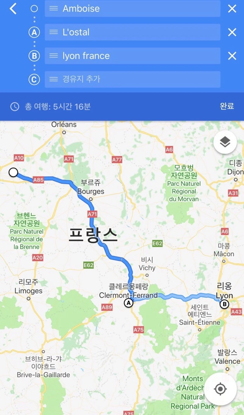 루아르를 떠난 우리의 다음 목적지는 리옹이었다. 나는 남프랑스에 가보고 싶은 마음이 컸는데 차를 가지고 간 우리 가족은 운전시간을 되도록 짧게 하려고 노력했다.