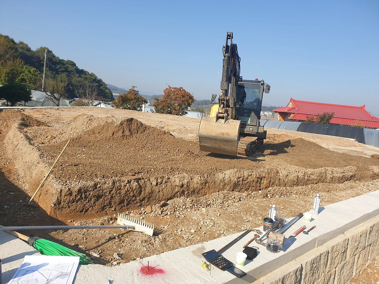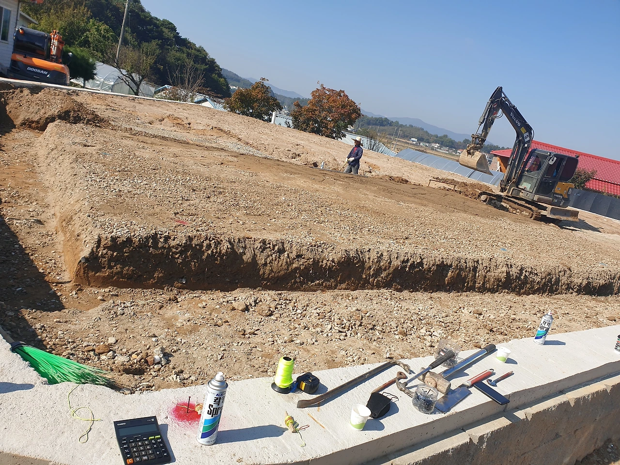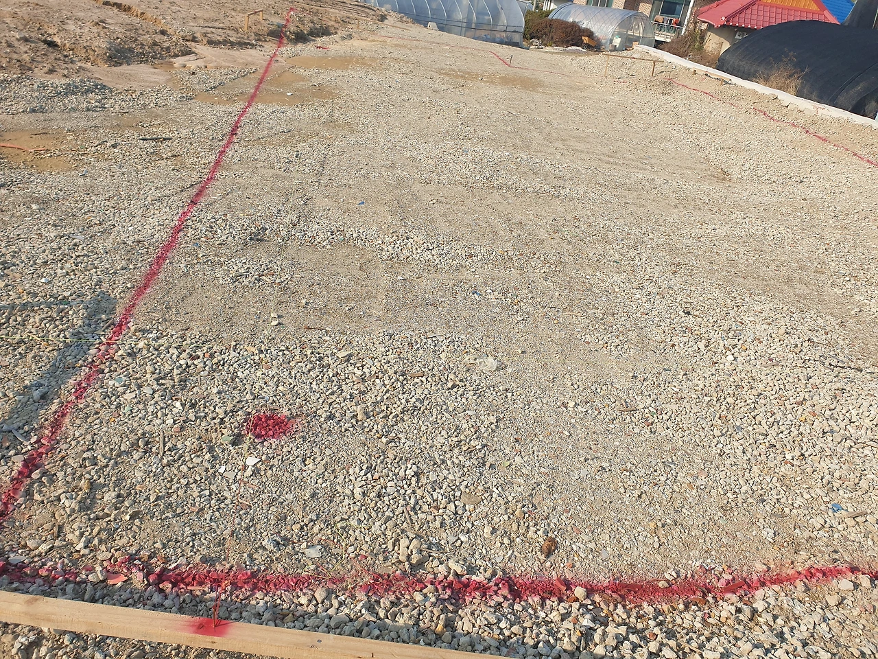 감리가 선정되고 착공계가 떨어졌다. 공사를 시작해도 된다는 승인이 떨어진 것이다. 현장에 컨테이너와 간이 화장실이 세워졌다. 그리고 바닥에 건물이 들어설 자리를 미리 표시해 두는 작업을 해두니 실감이 나기 시작했다.