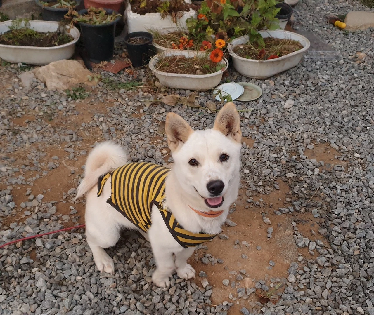장군이가 꽃순이 곁에 가서 냄새라도 맡고 가까이 가려고 하면, 평소와 다르게 꽃순이는 으르렁대는 소리가 예사롭지 않다. 얼마나 무섭게 경계를 하는지 장군이가 감히 곁에 다가가지 못하게 만들고 있다. 우리 꽃순 양은 그 와중에 장군이 밥도 먹고, 물도 마시고, 장군이 집에도 들락거리면서도 장군이는 곁에도 못 오게 하니 장군이의 속은 얼마나 타겠는가?