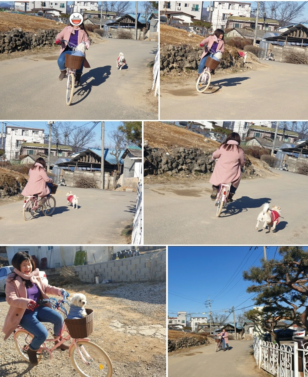 성탄 예배를 마치고 돌아온 아이는 영하 19도의 날씨에도 자전거를 타며 온 동네를 누비고 다녔다. 자전거 앞 바구니에는 퍼지를 태우고, 자전거를 뒤따르며 달리기 하는 꽃순이까지 모두 매서운 영하의 추위를 개의치 않아 보였다.