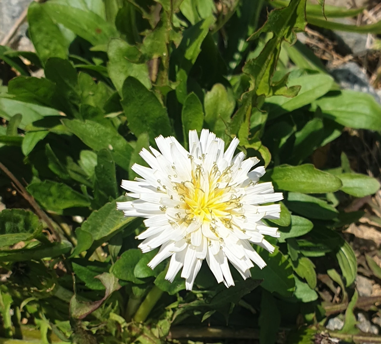 마당에 핀 토종 하얀 민들레꽃