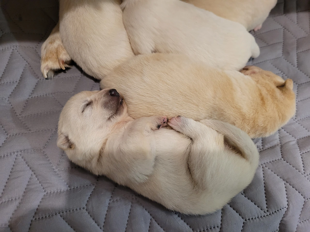 드디어, 꼬물이 인절미 요정들이 태어났다. 엄마를 닮아서 귀 부분만 갈색이고 온통 인절미 색 신생아들이다.