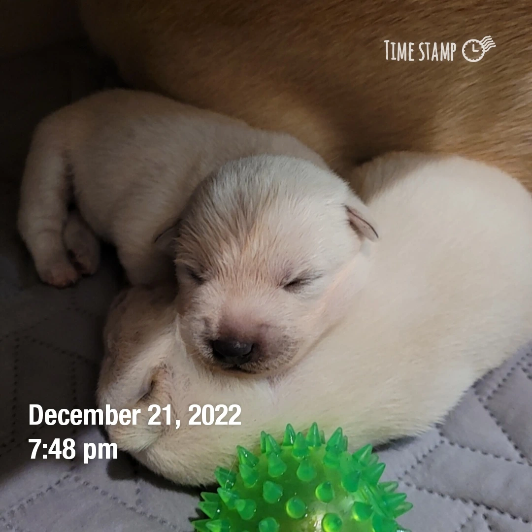 공놀이 대장 꽃순이는 어느샌가 본인의 최애 장난감 초록색 공을 새끼 강아지들 곁에 물어다 두었다.