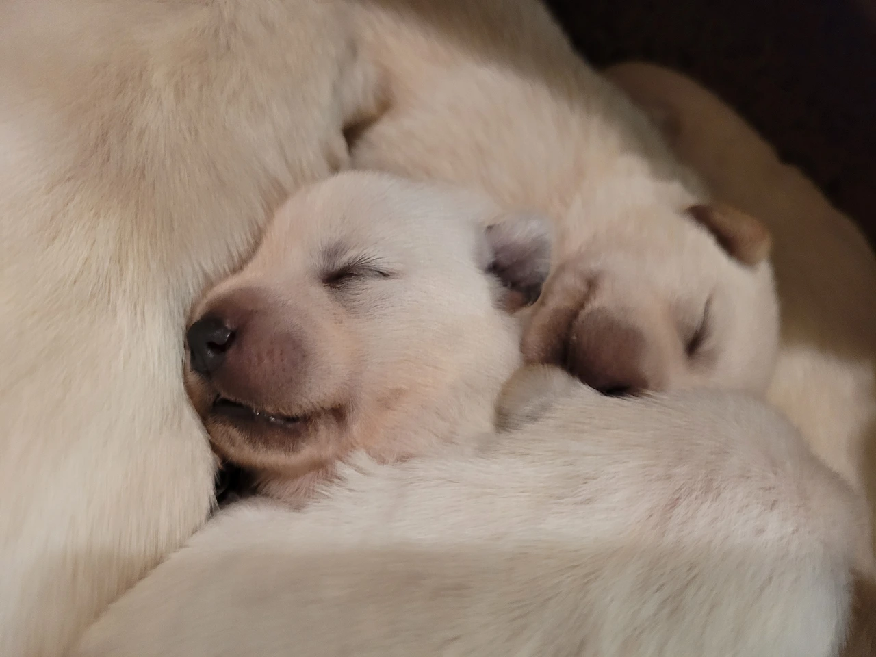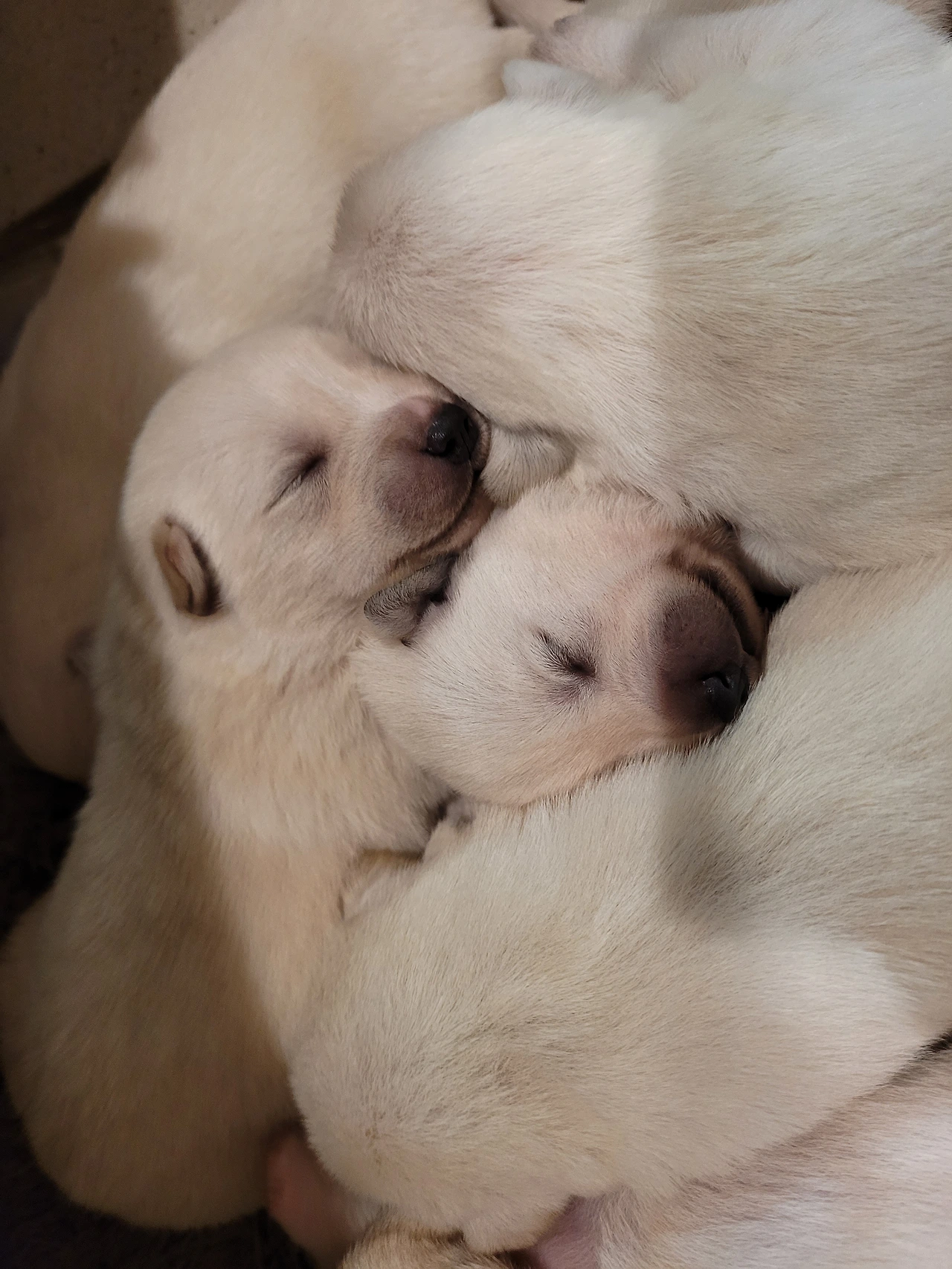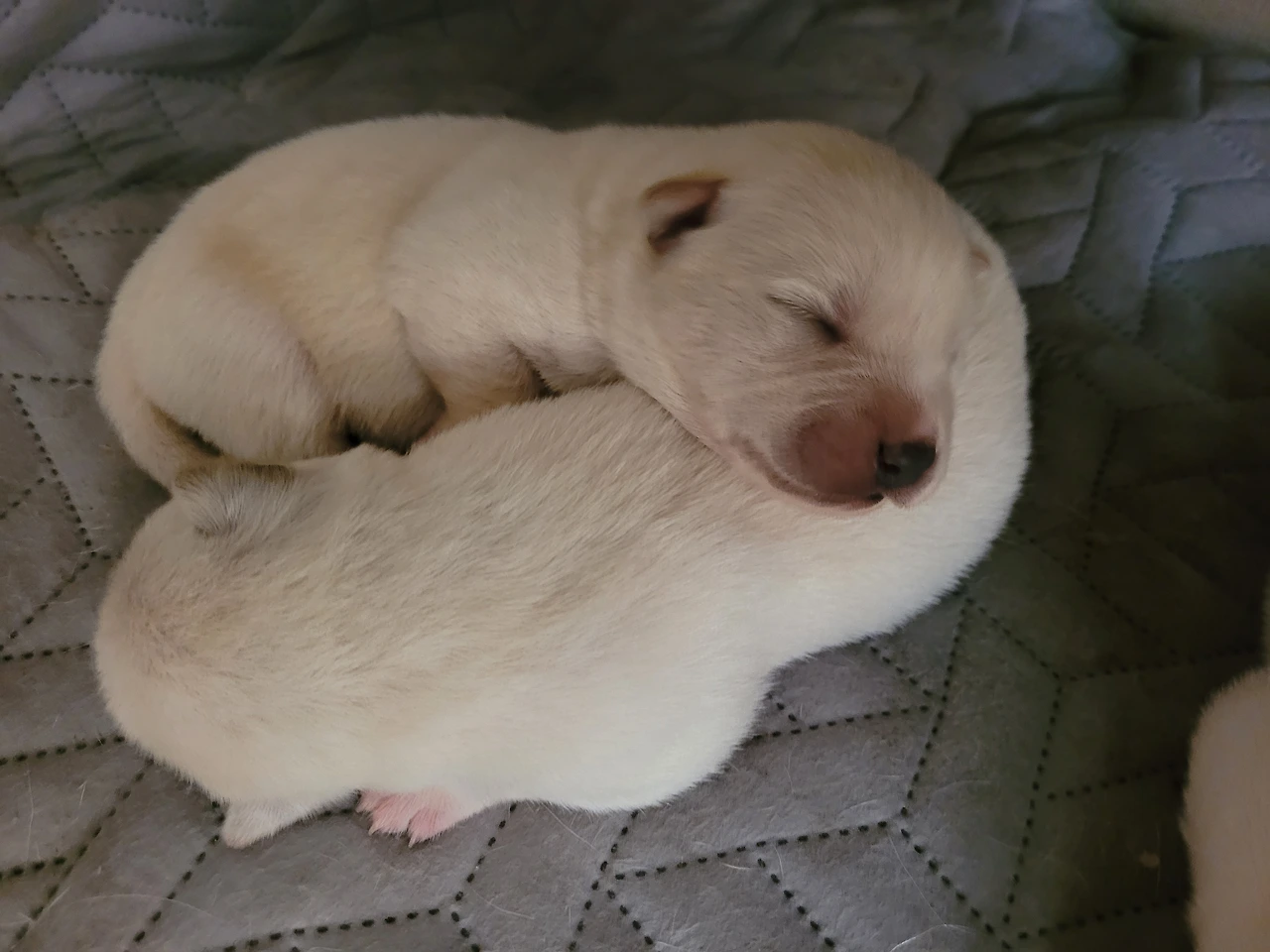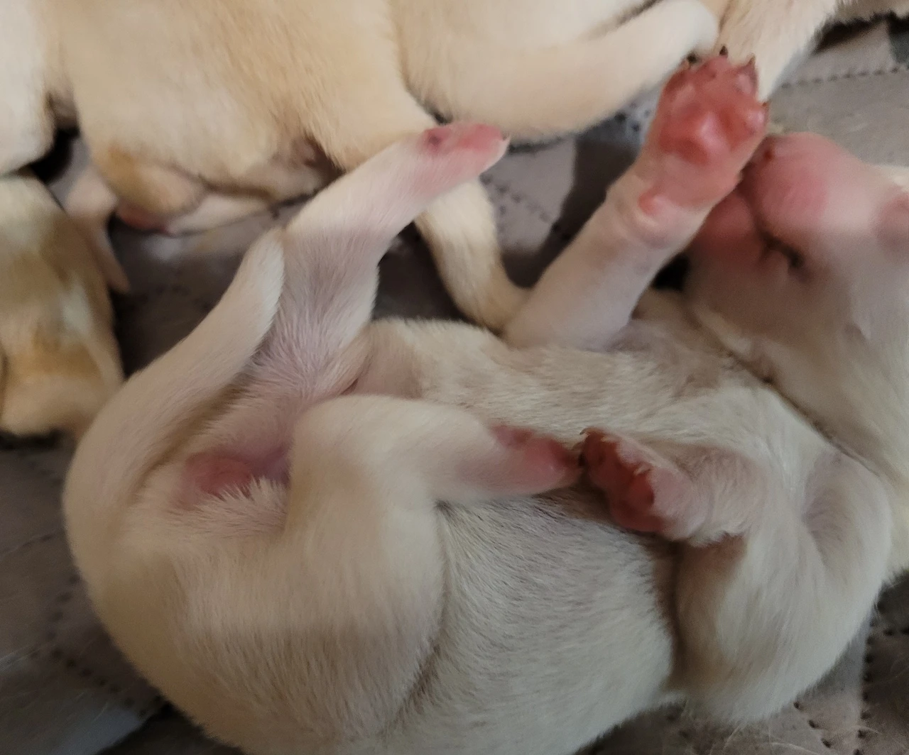 막 태어난 새끼 신생아 강아지들의 얼굴은 형체가 없다. 어미 뱃속에서 나올 때는 얼굴은 온통 핑크색으로 뚜렷한 이목구비가 보이지 않았다. 발바닥도 얼굴도 온통 핑크 둥이들이다.
