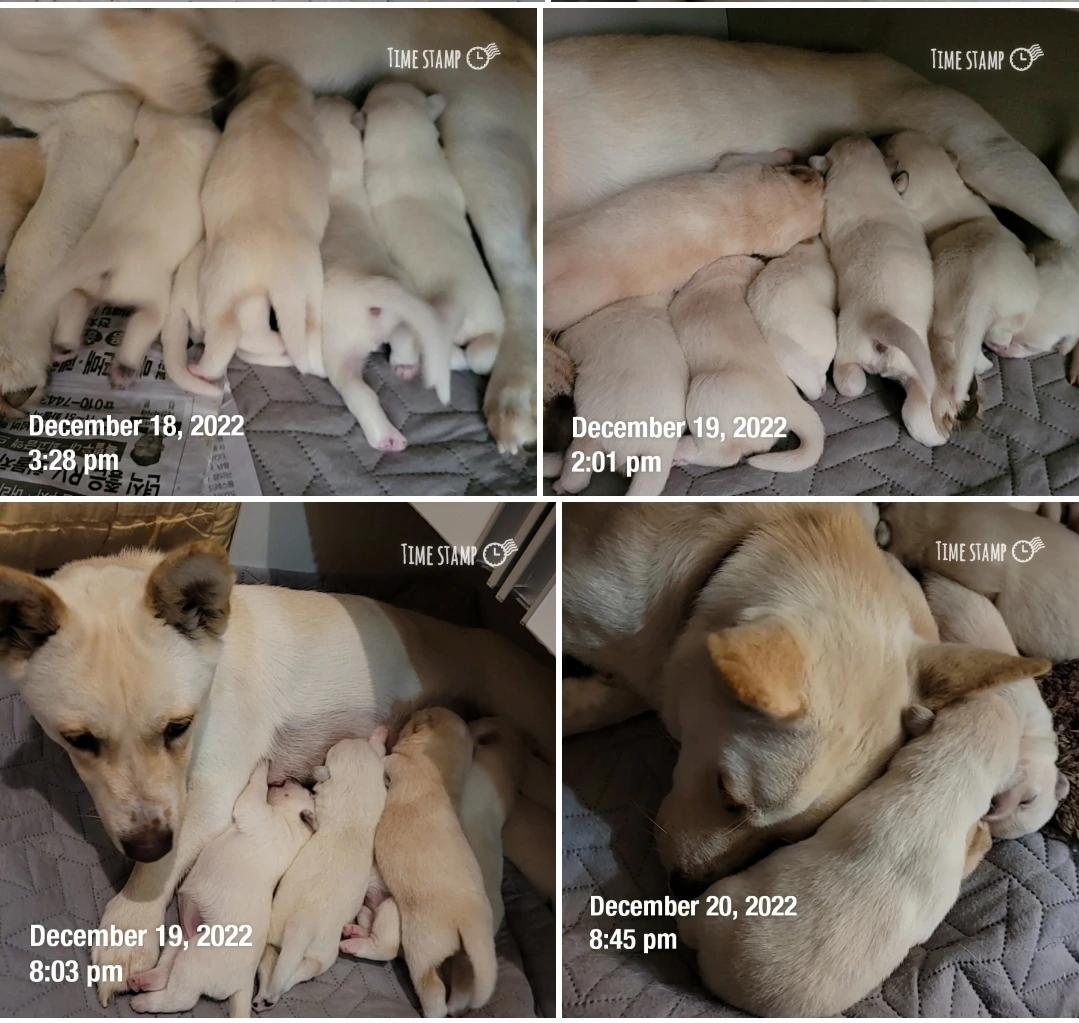 하루가 다르게 새끼 강아지들이 무럭무럭 자란다.