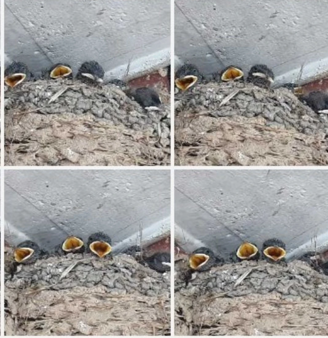 처마 맡에서 알을 깨고 나온 새끼 제비들