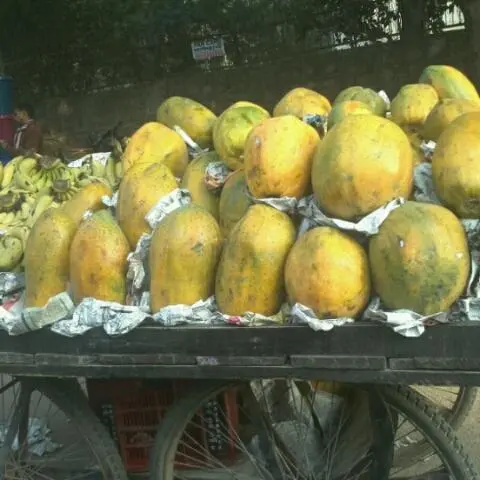 리어커에서 파는 인도 열대과일 파파야
