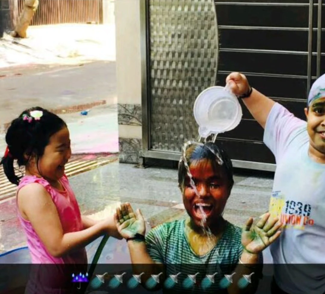 집에 있을 때는 집주인의 아이들 굴지와 아시스, 그리고 그들의 사촌들까지 합세하여 이동식 수영장을 만들어 놓아 축제를 즐겼다. 인도 북부 펀잡 출신인 집주인 라즈벤더는 명절 때가 되면 미리 인도의 명절을 알리며 딸아이를 축제에 초대했다. 홀리(holi) 때는 늘 흰색 옷을 입혀서 보내라고 요청했다.