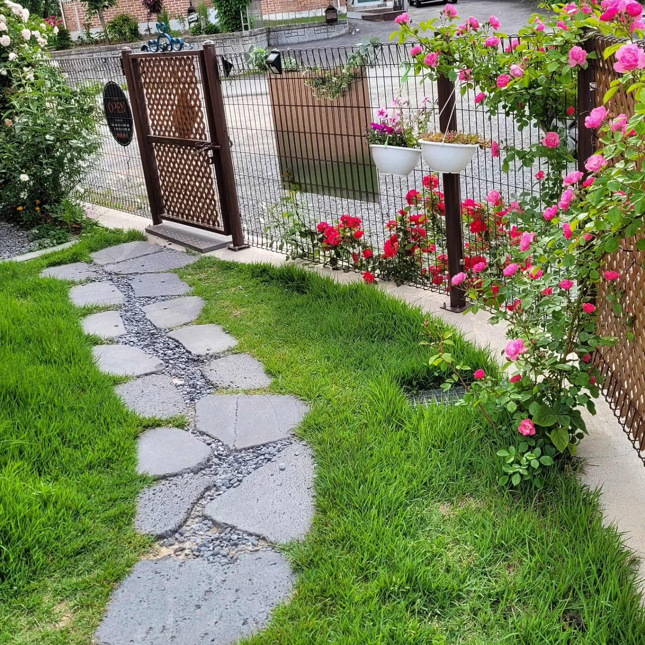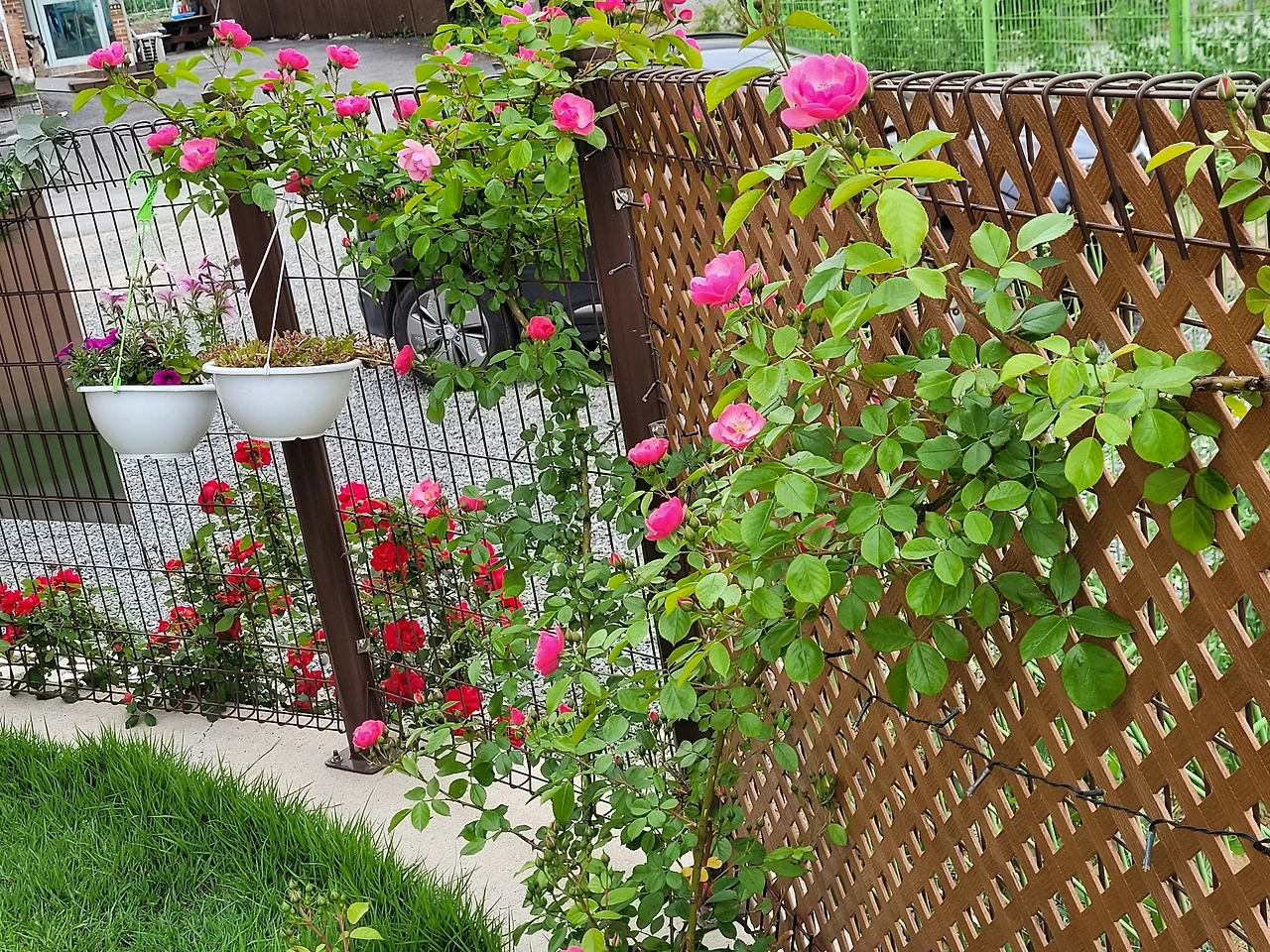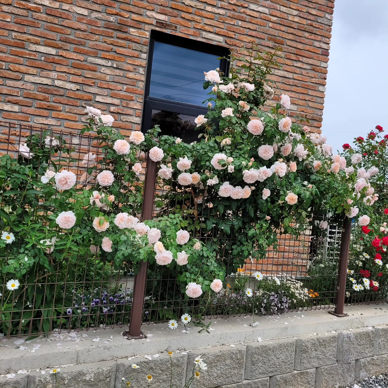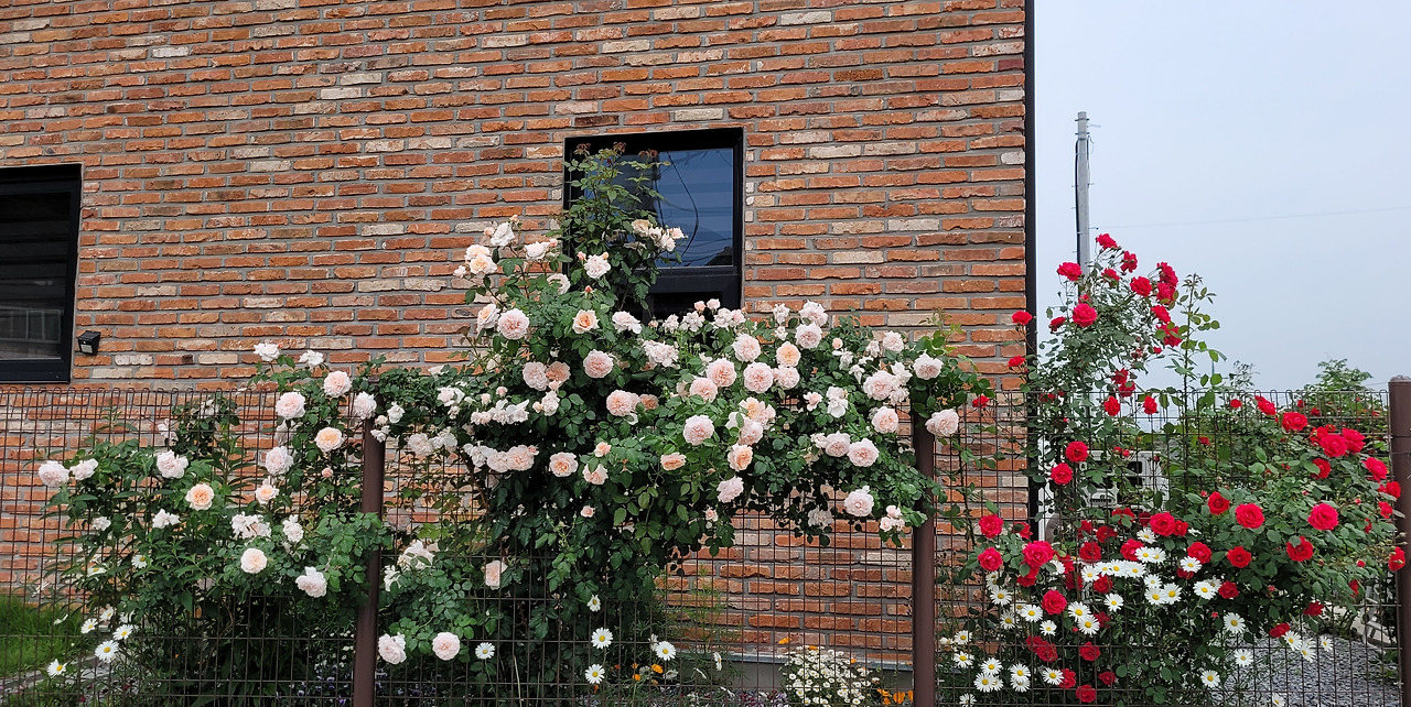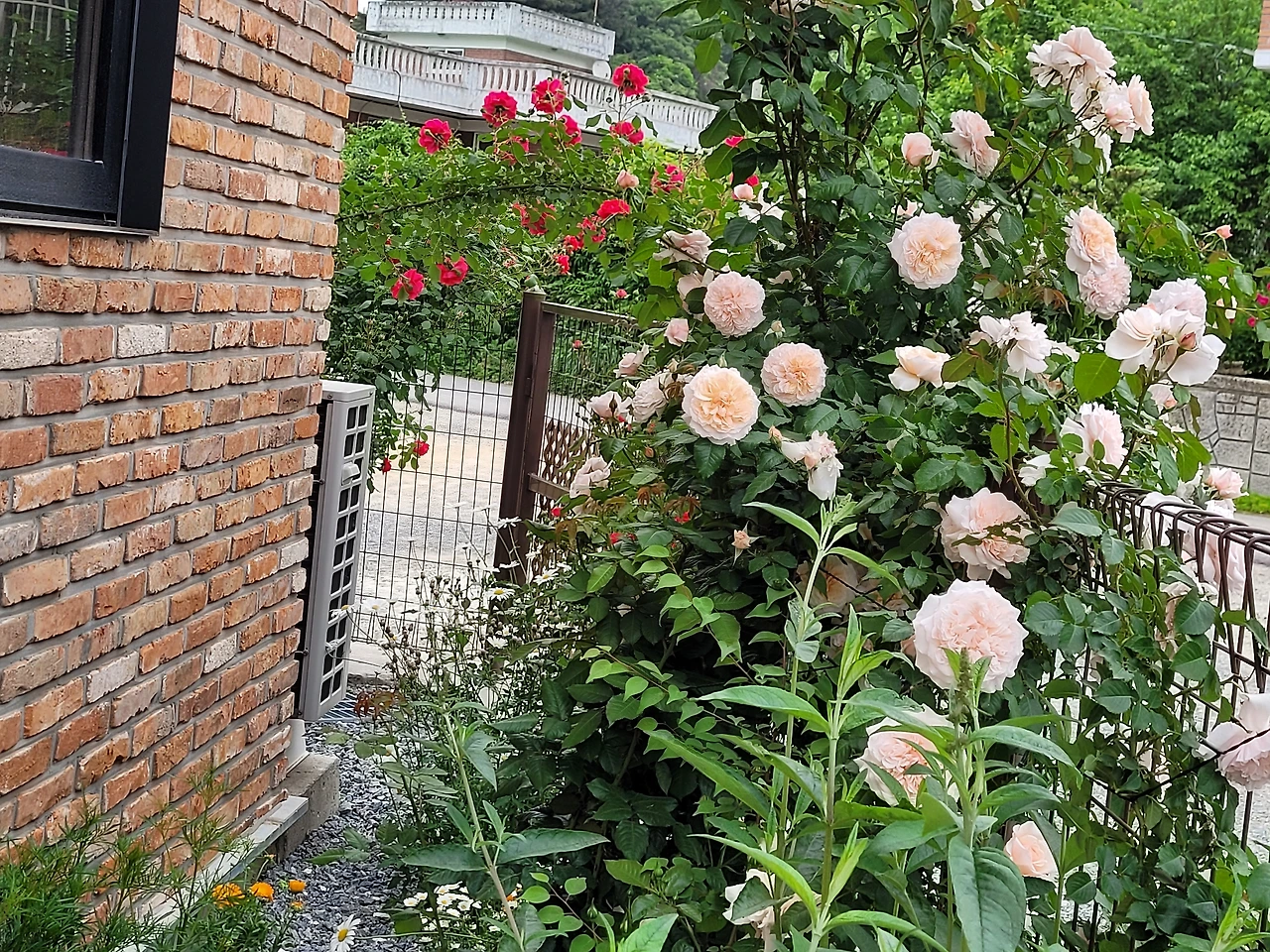 분홍, 살구, 노랑, 흰색 영국 장미를 돈을 더 들여서 데려왔고, 뒷마당에는 빨간 한국 장미들로 감싸주었다.