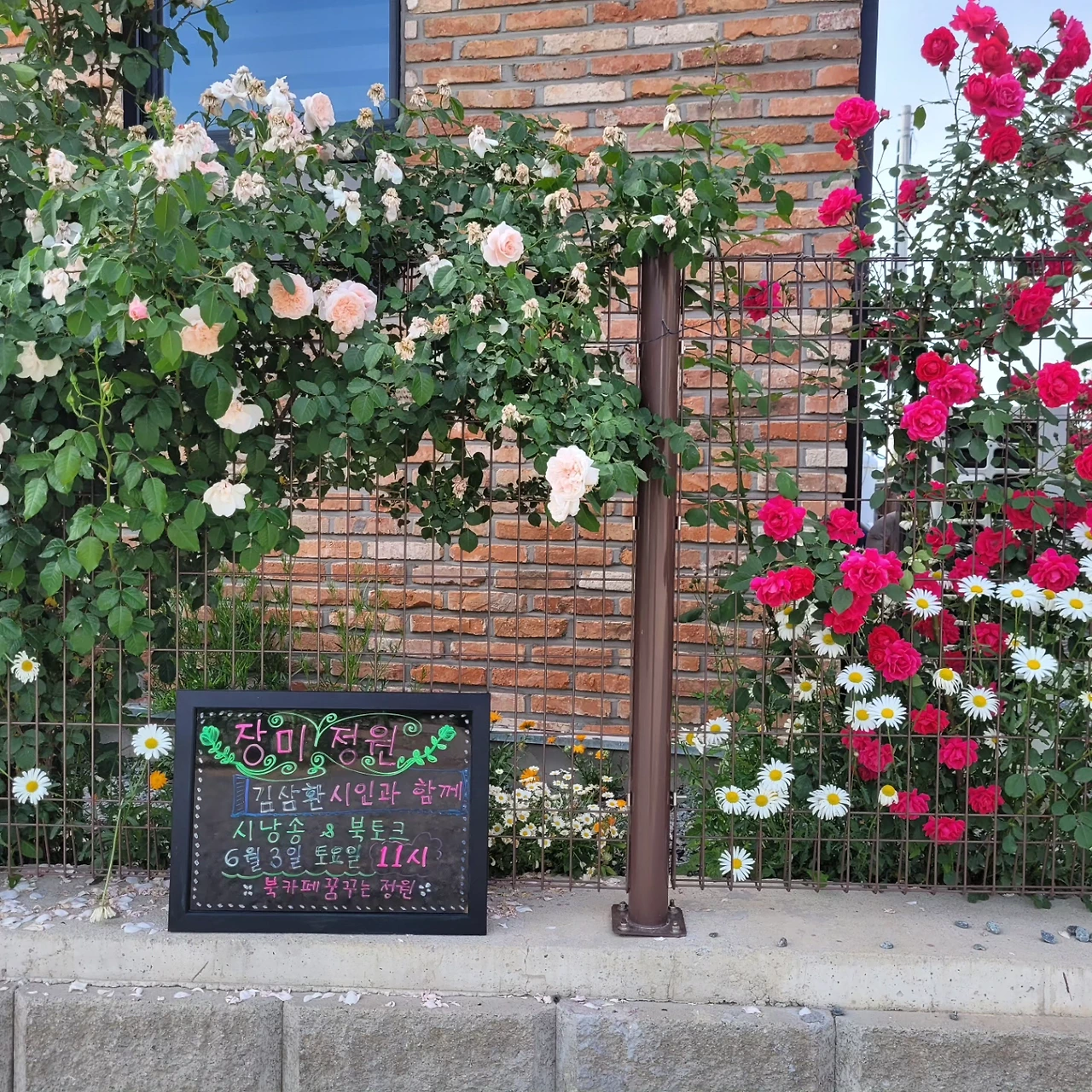 북카페꿈꾸는 정원도 장미로 뒤덮이고 있다.