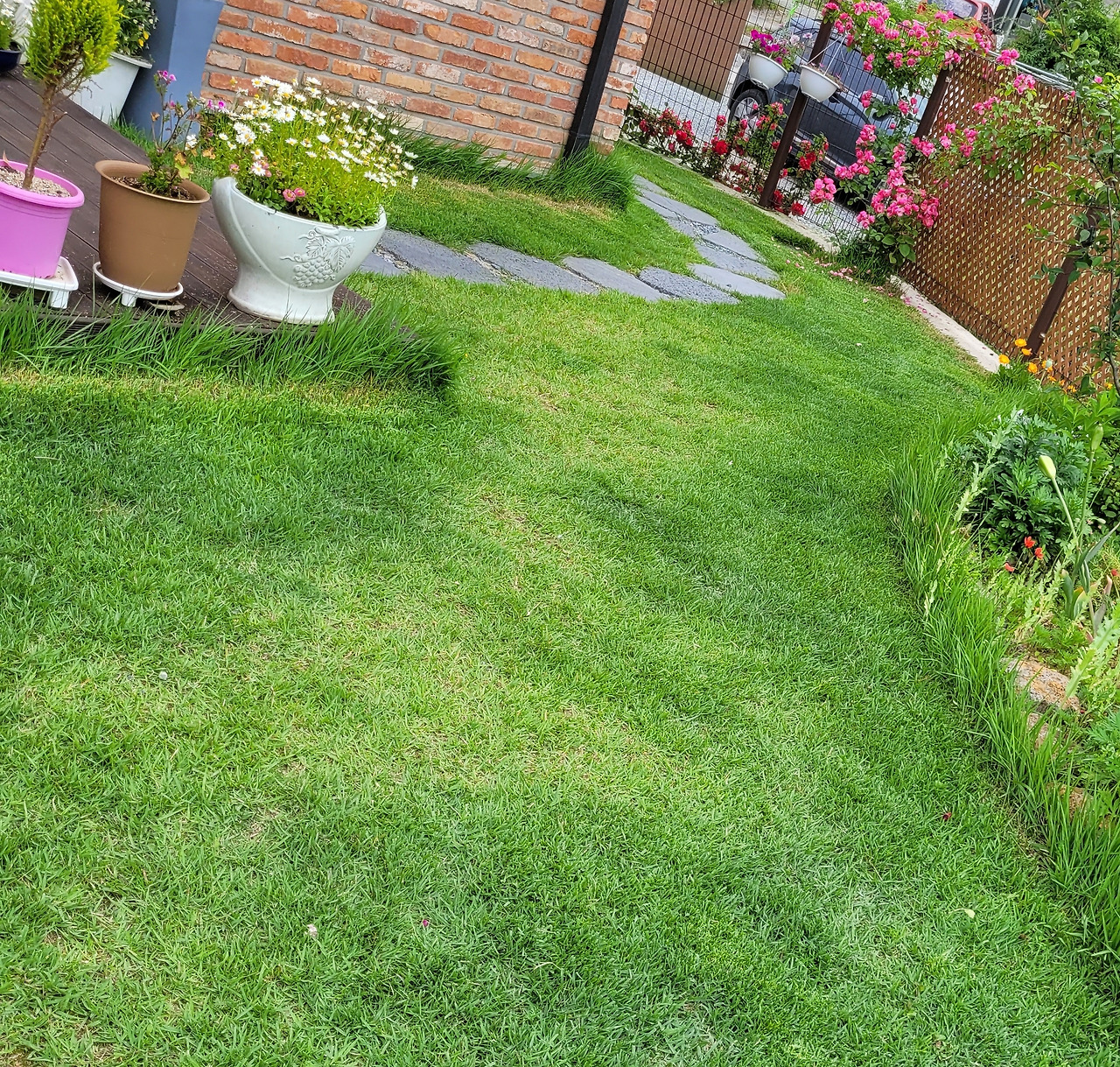 그리고 마침내, 길쭉하고 뾰족하게 잔디숲을 이뤘던 마당에 초록 잔디 양탄자가 깔렸다.