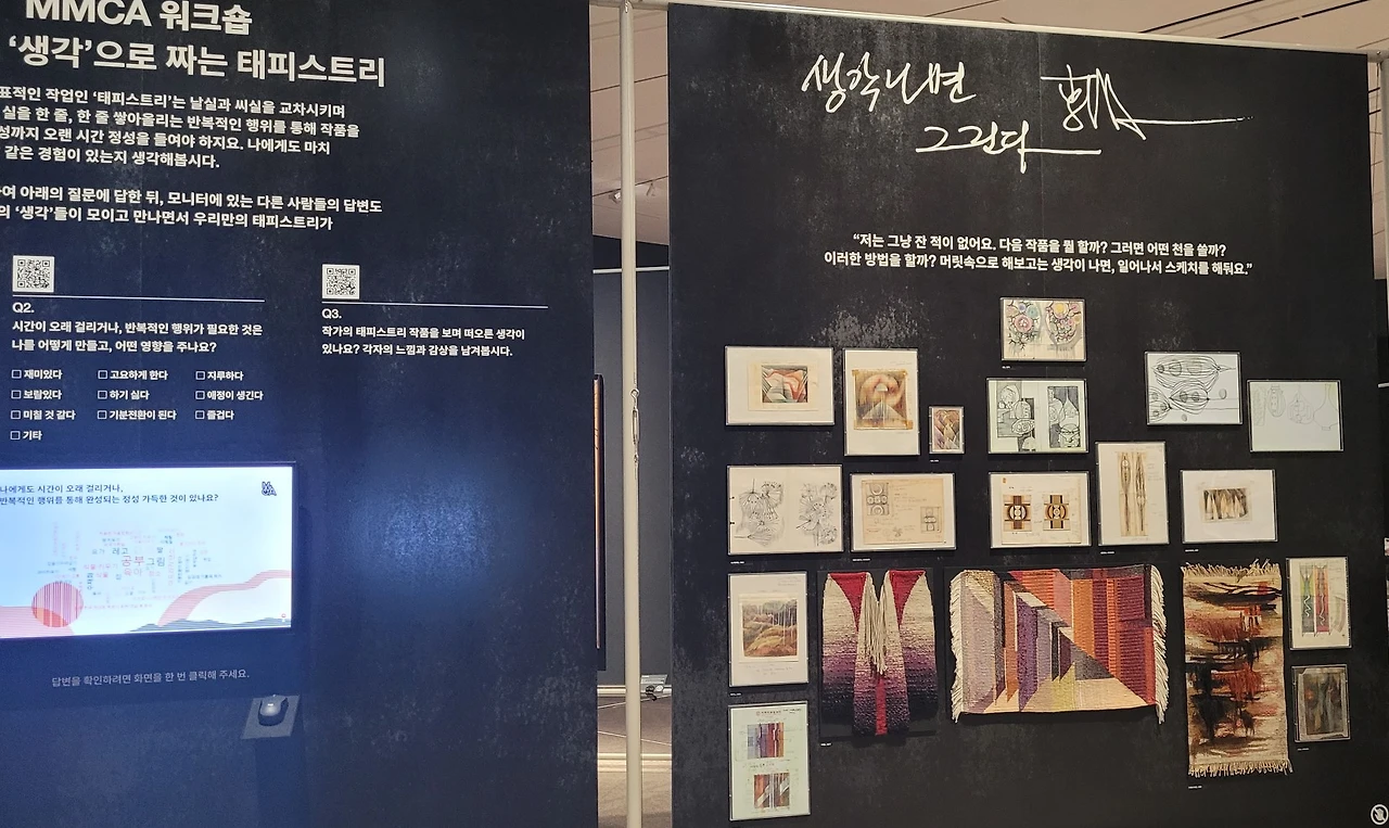 섬유미술은 회화와는 달리 재료에서 오는 독특함이 있잖아요.따뜻하잖아요. 왜 섬유 작업을 하냐고 물어보는데,난 참 포근하고 좋거든. -이신자