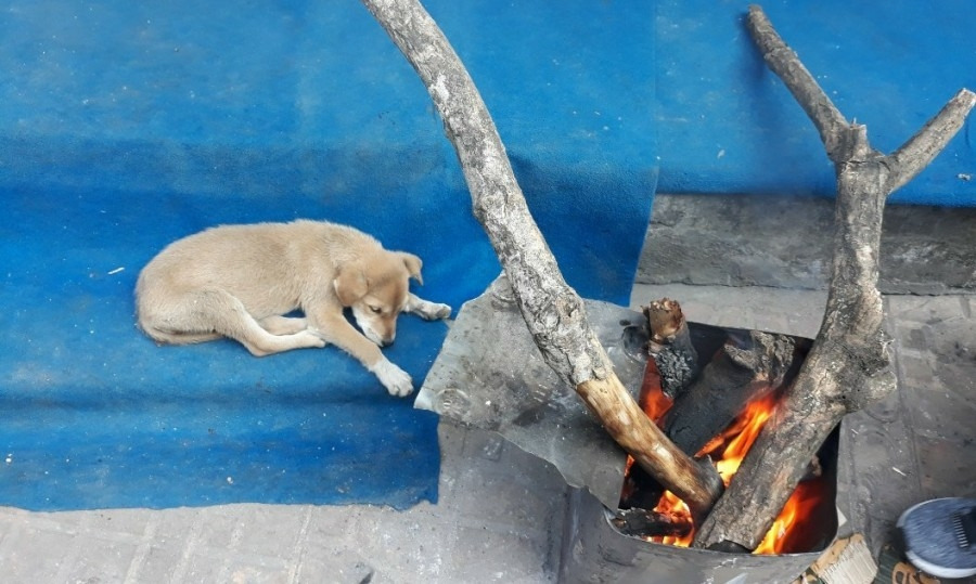 바깥에는 여기저기에 불을 피워대는 화로가 있었다. 우리도 종종 발걸음을 멈추고 불가에 다가갔다. 그들과 함께 불멍에 동참하며 차갑게 곱은 손을 데웠다. 이러한 풍경은 정겹기도 하고 가끔 애처로워 보이기도 했다. 타닥타닥 타오르는 붉은 화로는 시린 손을 녹여주며 뭐든지 닥치는 대로 태워버릴 기세였다. 사실 이런 화로에서 나오는 매연은 인도 겨울 대기 오염의 원인이 되어 문제가 되었다. 태워서는 안 될 폐타이어 등 플라스틱제품을 태우는 경우도 종종 있기 때문이다.