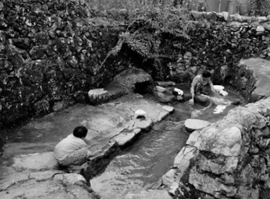 차가운 물에 손을 넣는 것이 두려워 검지 손가락만 살짝 넣다가 어느새 두 손을 다 넣어 물장난을 치고 있었다. 때론 빨래하는 엄마 옆에서 다리를 물속에 담그고 물장구를 치기도 했다. 비눗물은 빠르게 흘러내려갔기에 문제가 되지 않았다. 반질반질하게 매끄러운 돌의자는 햇살에 따사로이 데워져서 몸도 마음도 행복을 가져다주었다.