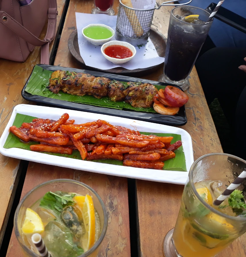 스위트 앤 칠리 포테이토, 머귀룸 띠카...그리고 라임 소다에 민트와 오렌지를 넣은 음료들.