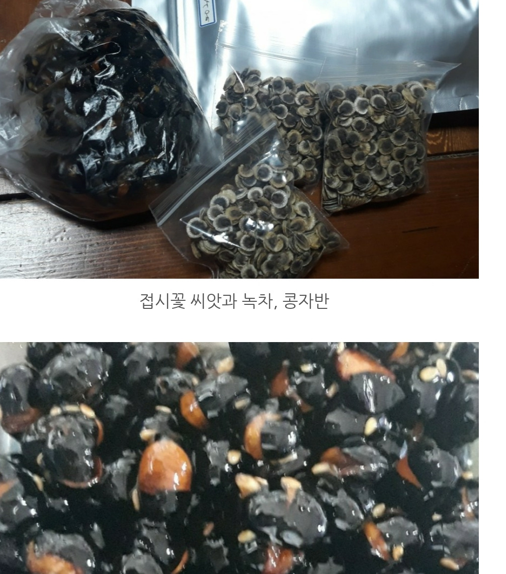 접시꽃 씨앗이 이렇게 생긴 줄도 몰랐고, 이렇듯 많이 보내주실 줄도 몰랐는데, 바리바리 싸서 많이도 보내 주셨다. 그리고 우리가 좋아하는 녹차 한 봉지까지 들어있었다. 나머지 하나는 뭘까? 하고는 유심히 살펴보니 반찬인 거 같았다. 에구... 직접 만드신 콩자반까지 보내주신 것이다. 감동 감동이다.