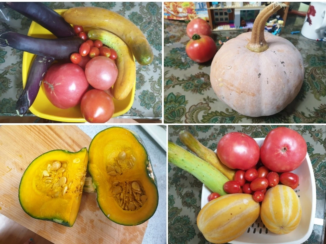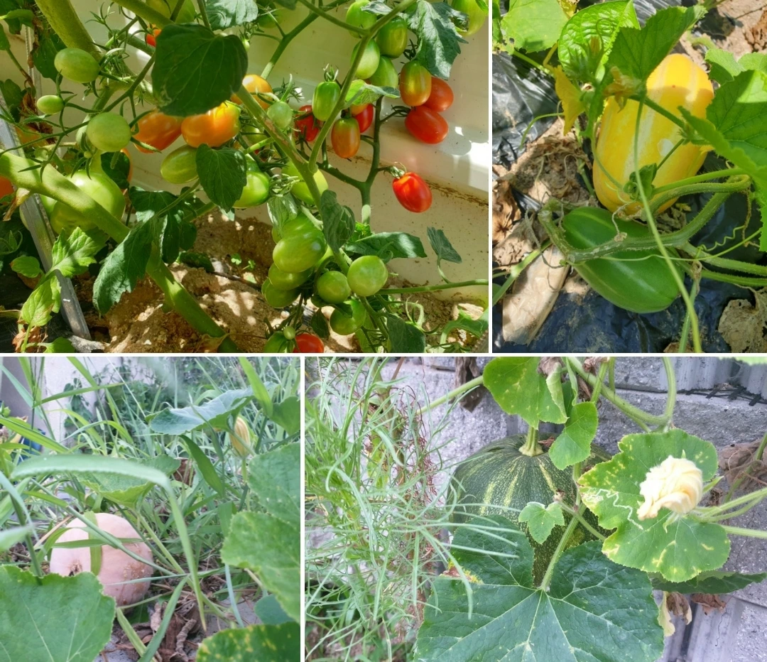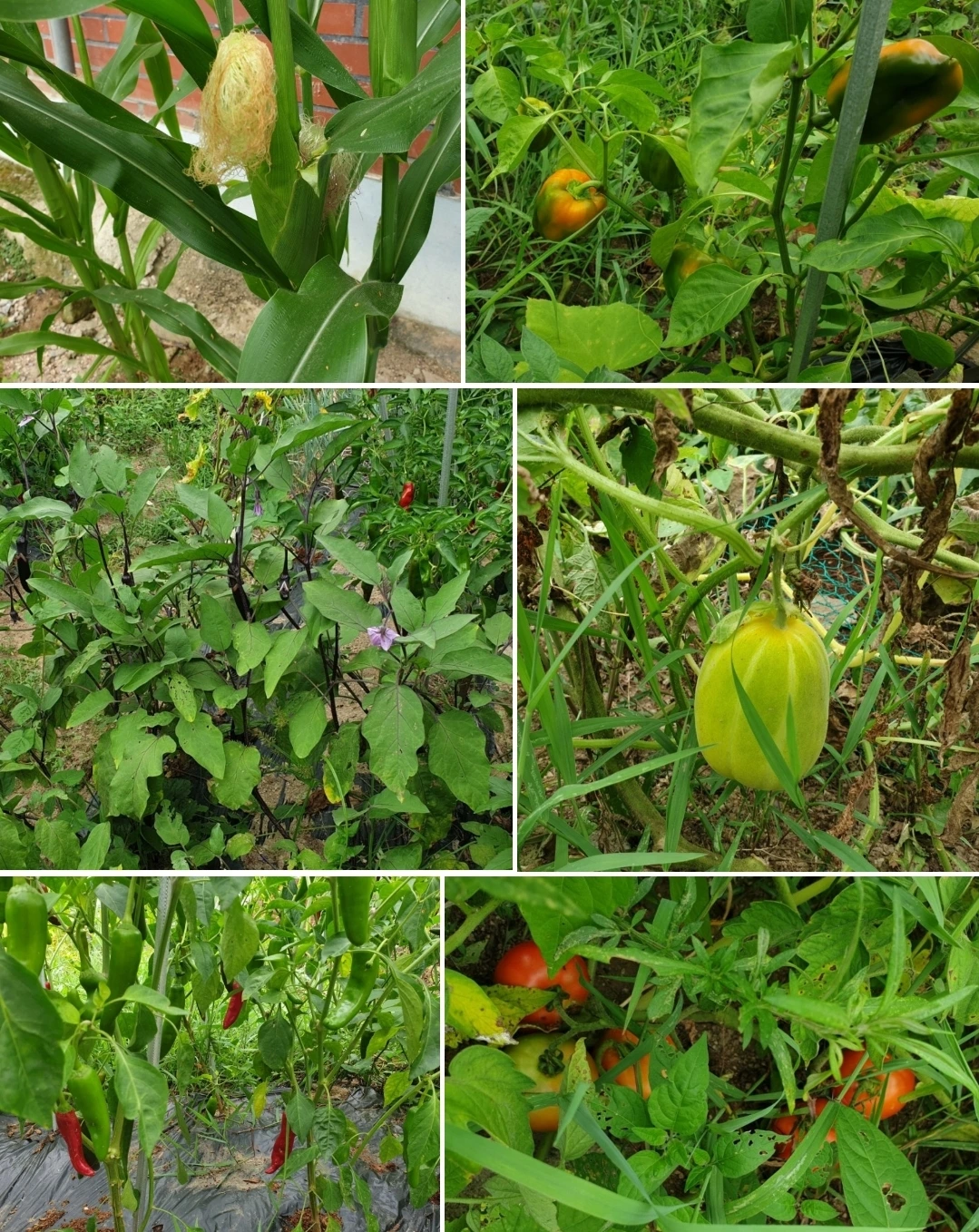 노랗게 익은 참외와 아직은 초록빛인 아기 참외가 심지어 대롱대롱 매달려서 우리를 기다리고 있었고, 커다란 토마토와 방울토마토는 탐스러운 빨간색으로 짙어졌다. 오이는 노랗게 익어 늙은 노각이 되어 버렸고, 쌈장에 찍어 먹던 여린 풋고추는 붉은 옷을 갈아입고 있은 중이다.