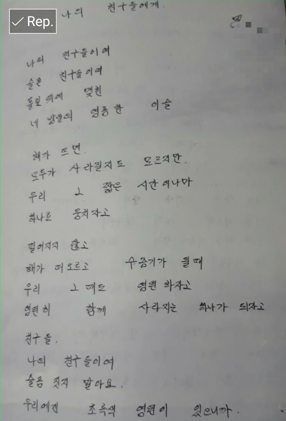 여고생인 내가 썼던 자작시 하나를 꺼내어 본다. 지금 보면 유치하기도 하지만, 그렇게 마주한 오래전 나 자신이 반가우면서도 너무나 낯설게 느껴진다.