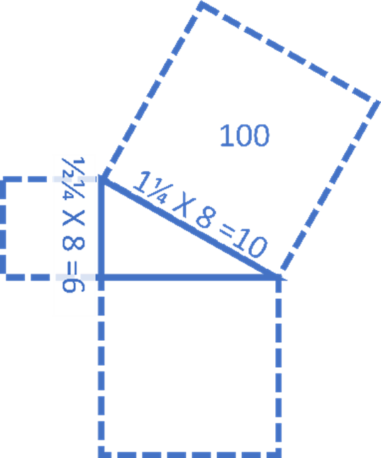 ❼ 이렇게 계산한 인수인 8을 다른 변에 곱해서 ¾에 해당하는 길이를 계산하는데 아마 파손된 부분에 “6” 이라는 숫자가 있을 것을 예상됩니다.