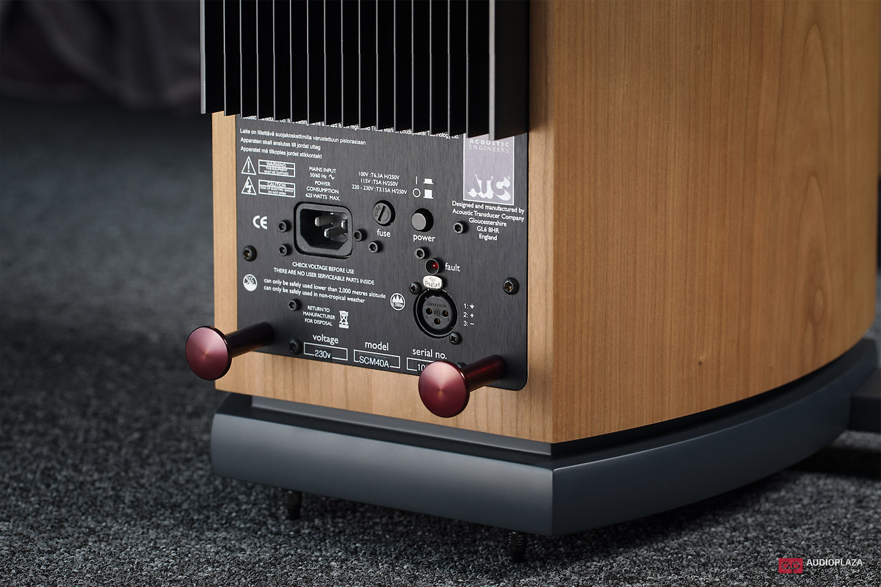 스피커인 SCM40A는 딱히 언급할 부분이 크지 않다. 인클로저와 드라이브 유닛은 모두 SCM40 그대로이기 때문이다. 달라진 것은 딱 2가지. 크로스오버와 앰프이다. ATC 액티브 스피커가 패시브 보다 월등한 가치를 자랑하는 부분은 바로 이 부분에 있다. 패시브 모델들은 콘덴서와 코일 그리고 저항으로 구성된 패시브 크로스오버 네트워크 회로로 소리를 분할한다. 코일, 콘덴서 그리고 저항의 패시브 부품만으로 소리를 갈라내는 필터를 만들어서 스피커가 소리를 내준다. 이에 반해 SCM40A에는 트랜지스터로 구성된 일종의 앰프와 같은 회로가 크로스오버 회로를 대체한다. 바로 액티브 크로스오버다. 일반 스피커의 패시브 크로스오버와 달리, 트랜지스터로 설계된 액티브 크로스오버 회로는 훨씬 더 정교한 위상 특성과 보다 정확한 신호 전달 성능을 자랑한다. 패시브 모델에 비해 보다 넓은 음의 분산 특성과 훨씬 적은 위상 변이(보다 정교한 위상 특성을 얻게 된다)라는 음질적 장점이 크다. 크로스오버로 인한 신호의 손실과 소리의 변형 문제가 거의 모두 해결된다는 뜻이다.