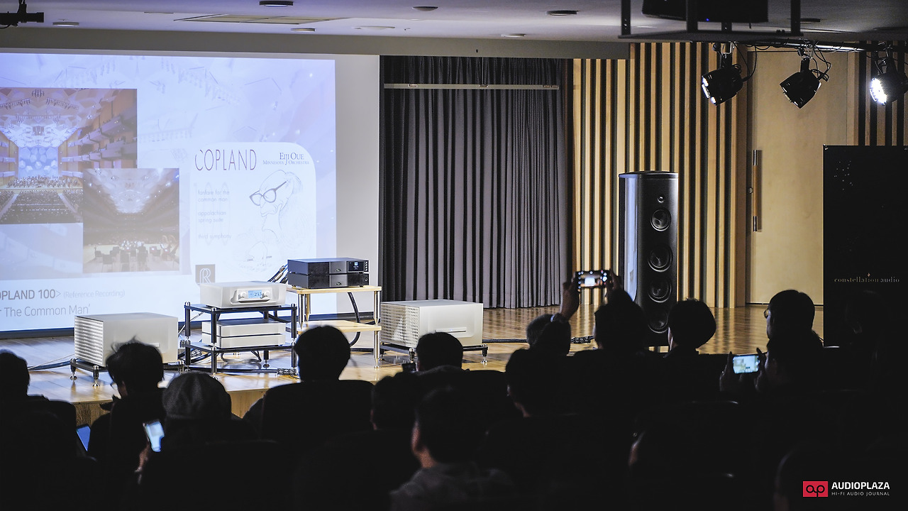 각기 다른 3가지 색 브랜드가 연출해낸 사운드는 대단히 넓은 무대와 깊은 무대 안길이를 그려낸 스테이징으로 랜드홀 전체를 입체적인 콘서트홀로 만들어버렸다. 애론 코플랜드의 ‘보통 사람을 위한 팡파레’ 같은 곡에서는 끝도 없는 다이내믹스와 압도적인 파워로 공간을 장악, 많은 이들을 놀라게 만들었을 뿐만 아니라 마커스 밀러의 ‘Trip Trap’ 같은 재즈 베이스 연주에서는 한치의 흐트러짐이나 번짐이 없는 타이트하고 정확한 베이스의 탁월한 연주를 몸으로 느끼게 만들었다. 이 외에도 다양한 클래식과 재즈, 팝의 각종 데모는 쉽게 경험할 수 없는 하이엔드 시스템의 놀라운 세계를 체험할 수 있도록 해주었다. 이처럼 훌륭한 사운드의 체험으로 인해 한 시간이 넘는 행사 시간 동안 거의 대부분이 자리를 뜨지 않고 끝까지 음악과 사운드의 감상에 몰입하여 행사장을 뜨겁게 만들었다.