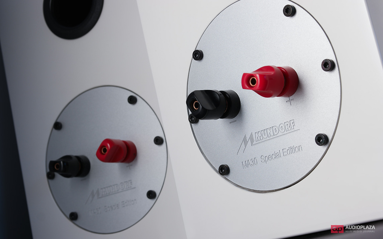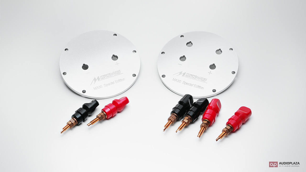 MA30 스페셜 에디션이 되면서 국내에서 개선한 부분이 한가지 더 있다. 바로 스피커 바인딩 포스트가 장착되는 백플레이트이다. 기본 모델에서는 플라스틱 패널에 단자를 고정시켰지만, 스페셜 에디션이 되면서 이름에 걸맞게 알루미늄을 절삭 가공하여 바인딩 포스트가 장착되는 새로운 고급 백플레이트를 제작했다.