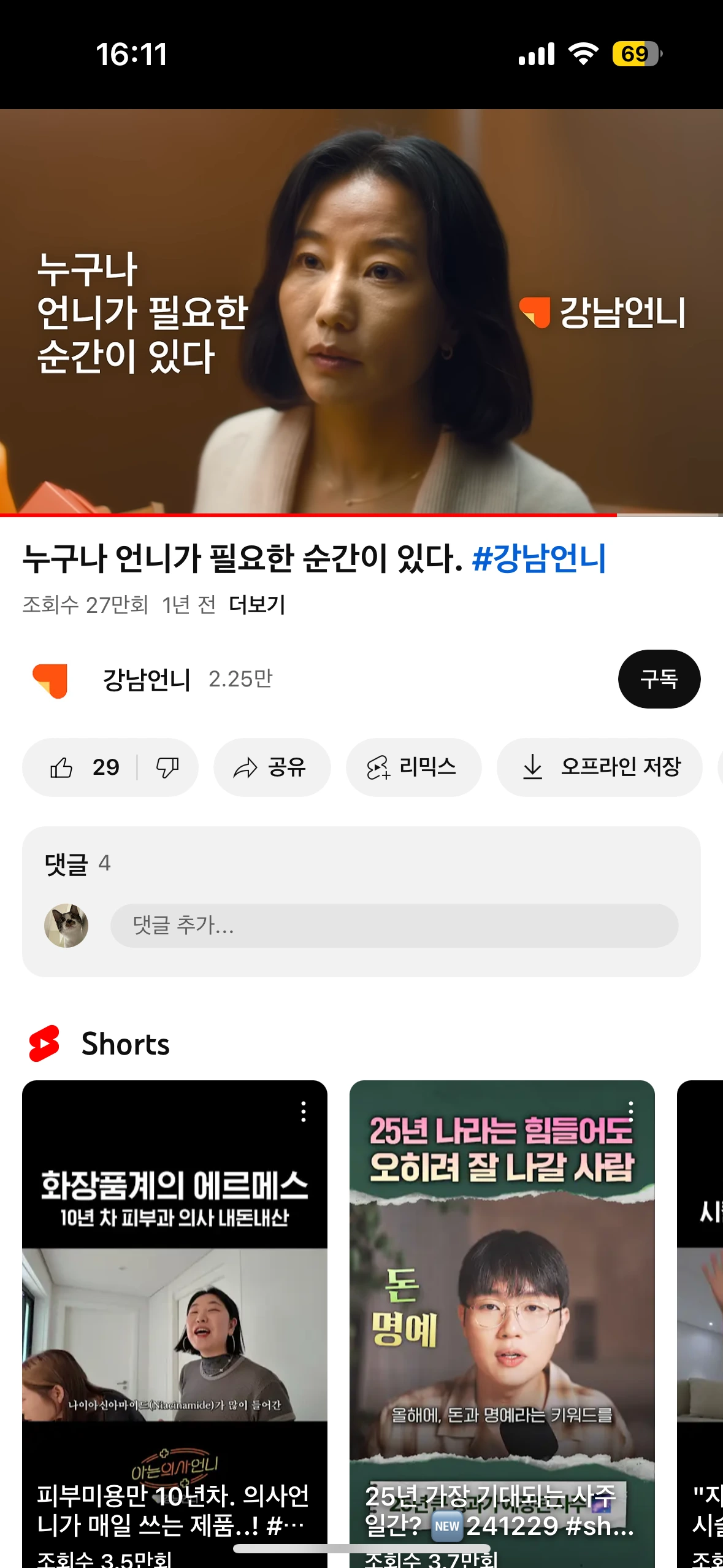 쇼츠 지면에서 점유율을 높이는 전략을 쓴 것으로 보임.