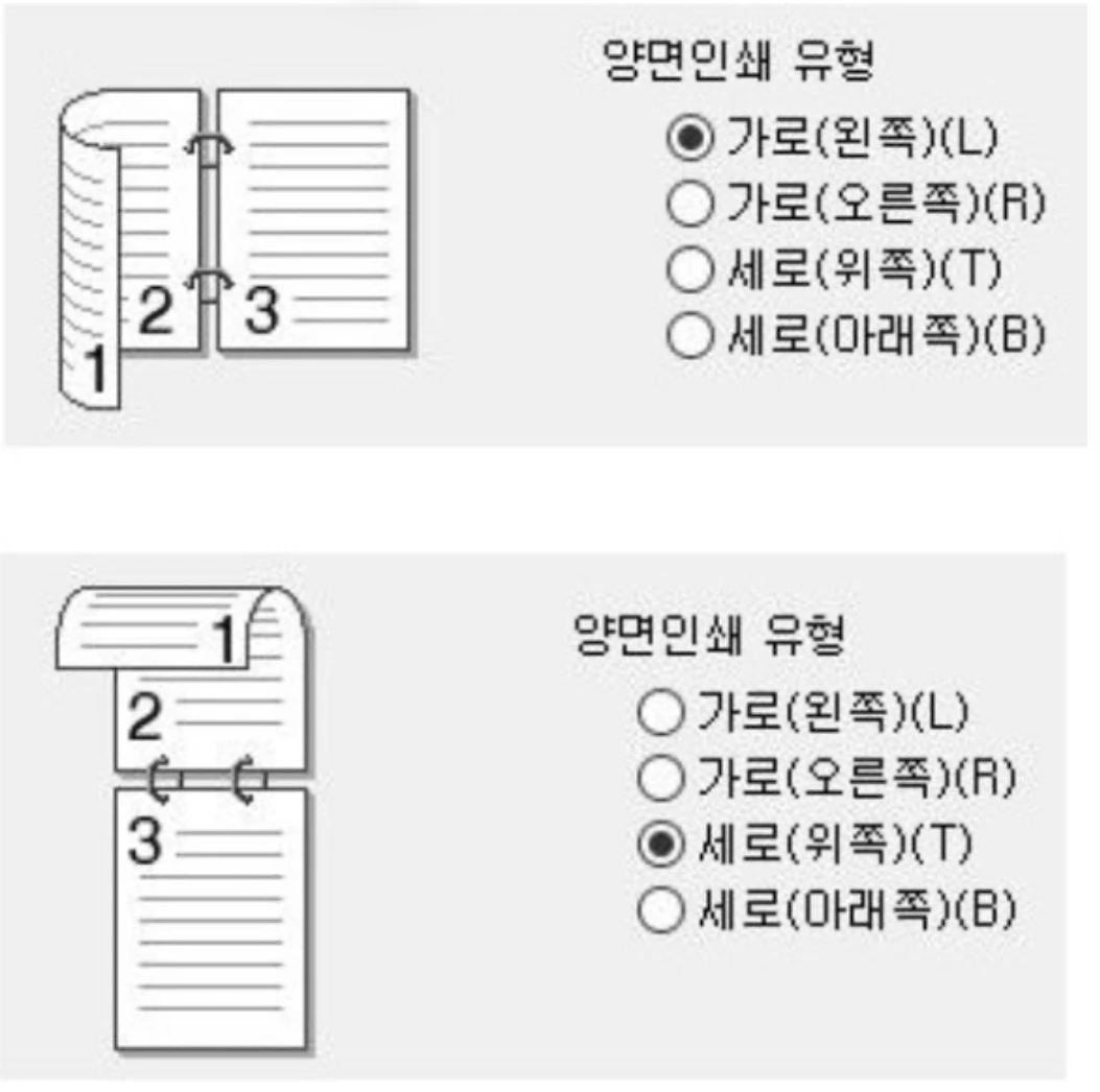 여기서 작은 문제가 발생합니다. 메뉴판 양면 인쇄를 요청하셨는데, 제가 출력한 방향과 고객님이 생각하신 방향이 상이했습니다. 저는 양면인쇄 유형을 세로 위쪽으로 출력했고, 고객님이 생각하신 건 가로 왼쪽이었습니다.
