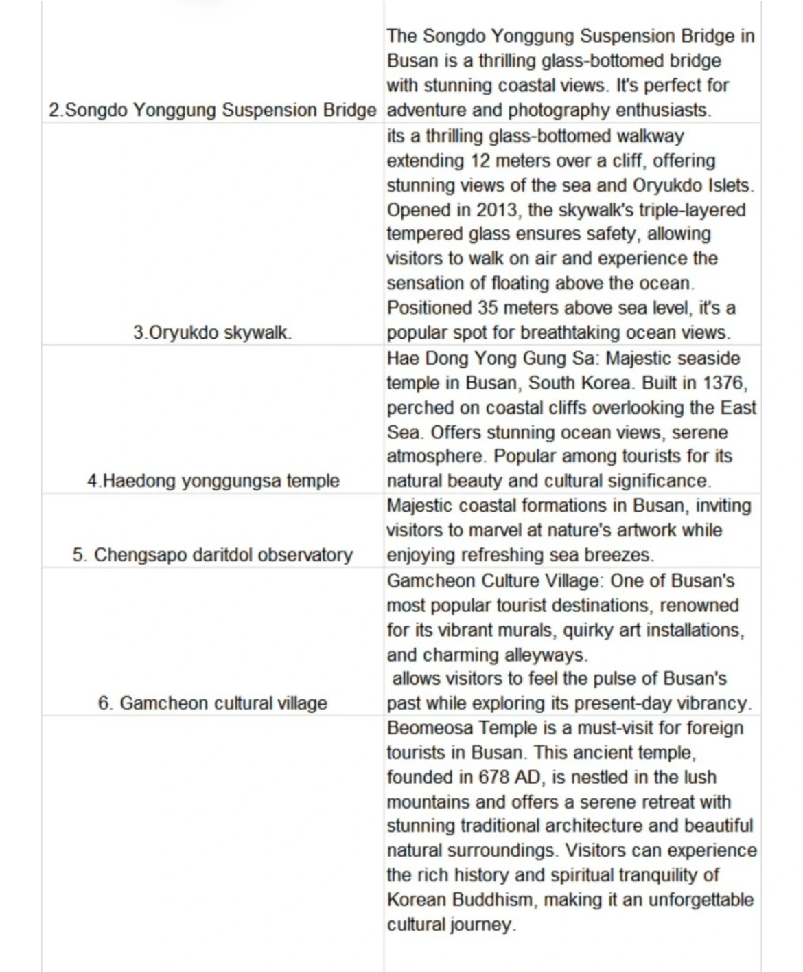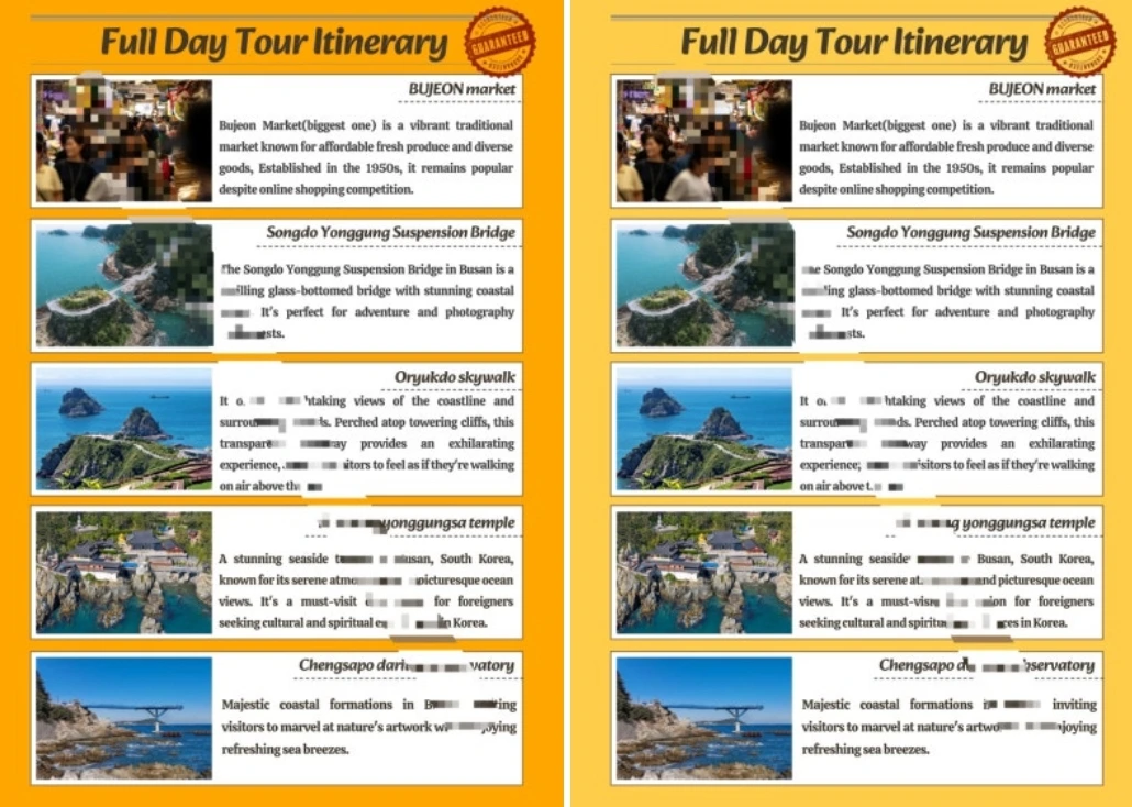 기본 틀에 각각의 설명들을 적어나가다보니, 관광명소를 설명하는 글의 길이가 제각각이었습니다. 글의 길이를 최소한으로 줄여달라고 부탁드렸는데, 여기서 애를 좀 먹었습니다.