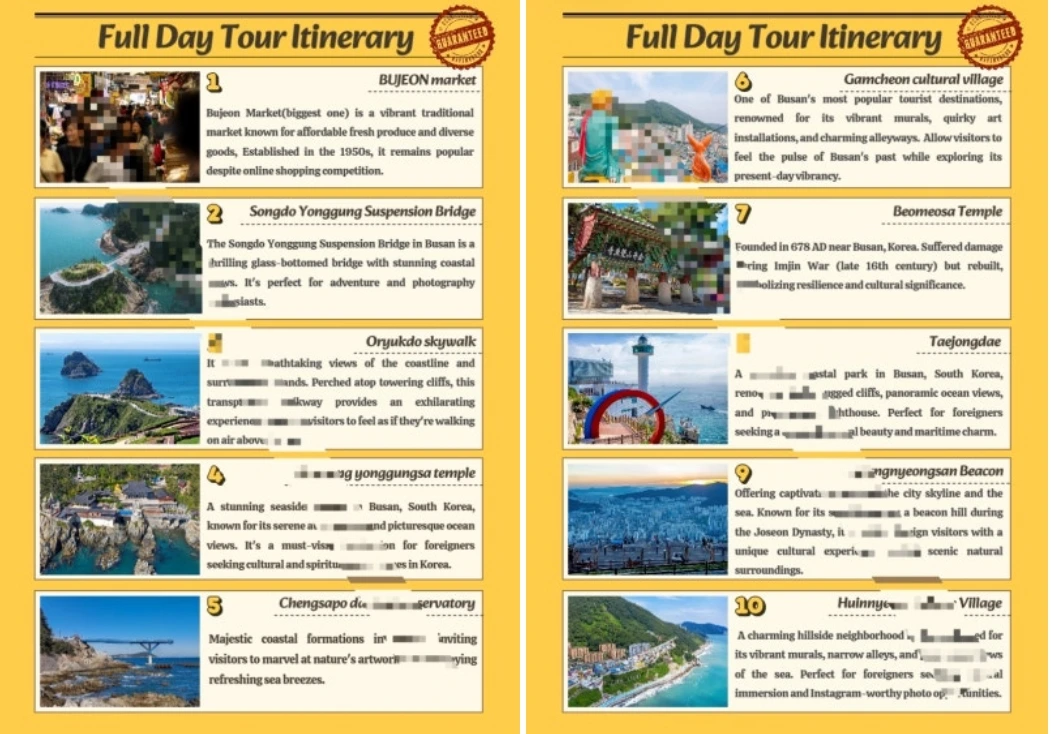 5. 관광명소 소개글에 번호를 매겨달라고 하셔서 추가로 작업을 도와드렸습니다. 디자인에 디테일을 주니까 한층 더 깔끔한 모습입니다.