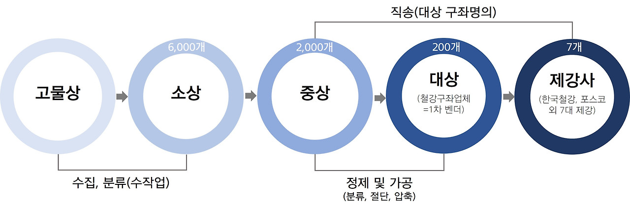 - 대상(大商) : 약 200여 개. 제강사와 직거래하는 1차 밴더, 업계 최상위.