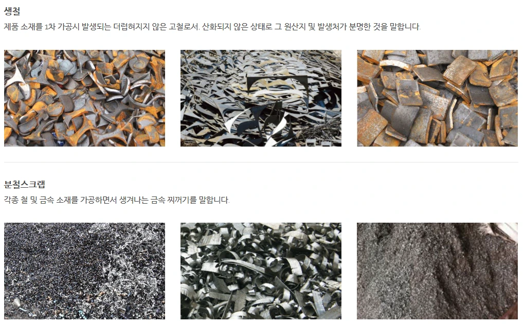 - 깨끗 한가? (이물질·페인트·오일 제거 여부) - 품목 확인? (고철 분류표 확인. 혼합 여부 확인)