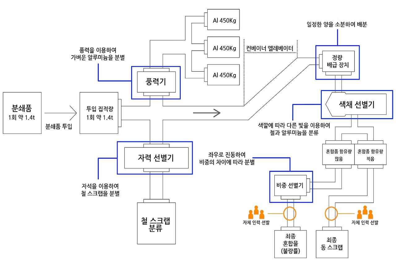 이 안에는 철, 동, 알루미늄이 섞여 있었고, 그대로 버리기에는 아까운 고가 폐기물이었다.