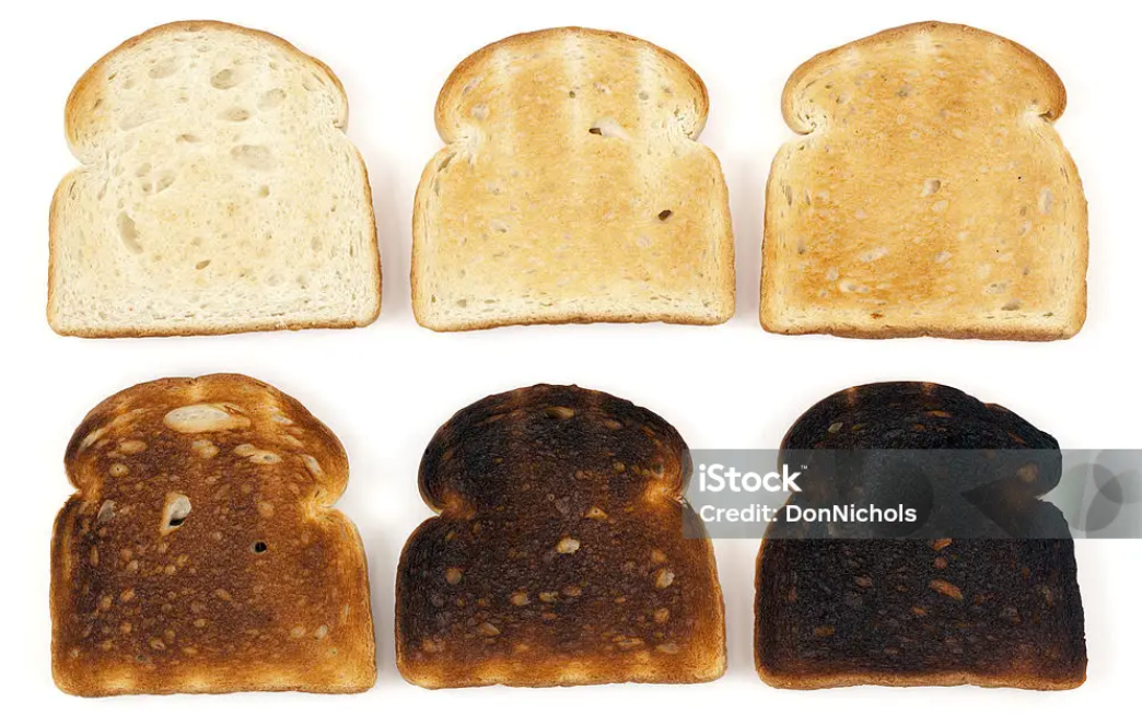 토스트가 까맣게 타버린 상태를 말하기도 한다.