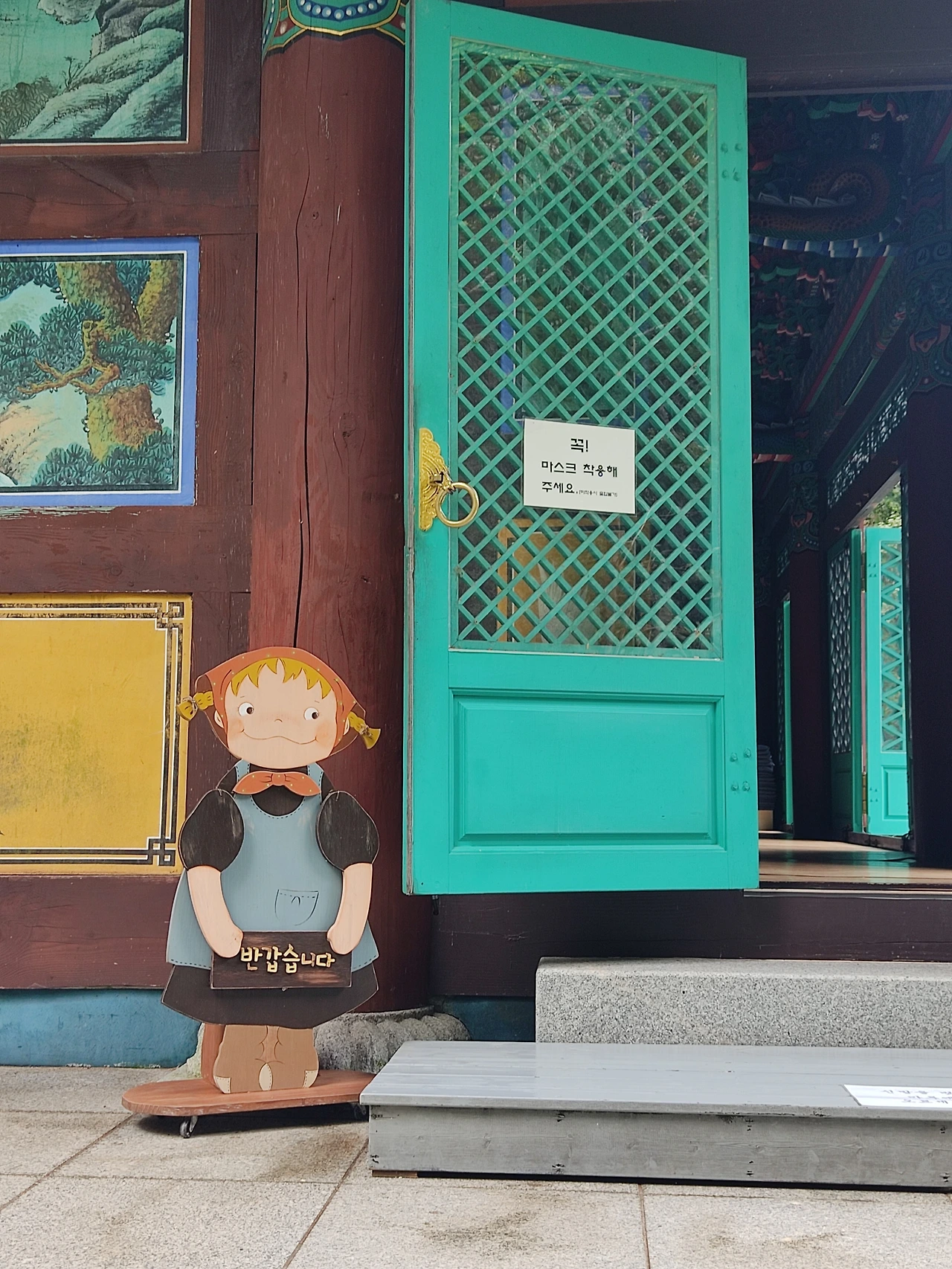 대웅전 옆문으로 발길을 돌리니, 이국적인 귀여운 꼬마 소녀가 반갑다고 예쁘게 미소 지으며 인사해주고 있어 잠시 멈칫했다가 나도 모르게 너무 크게 웃고 말았다.