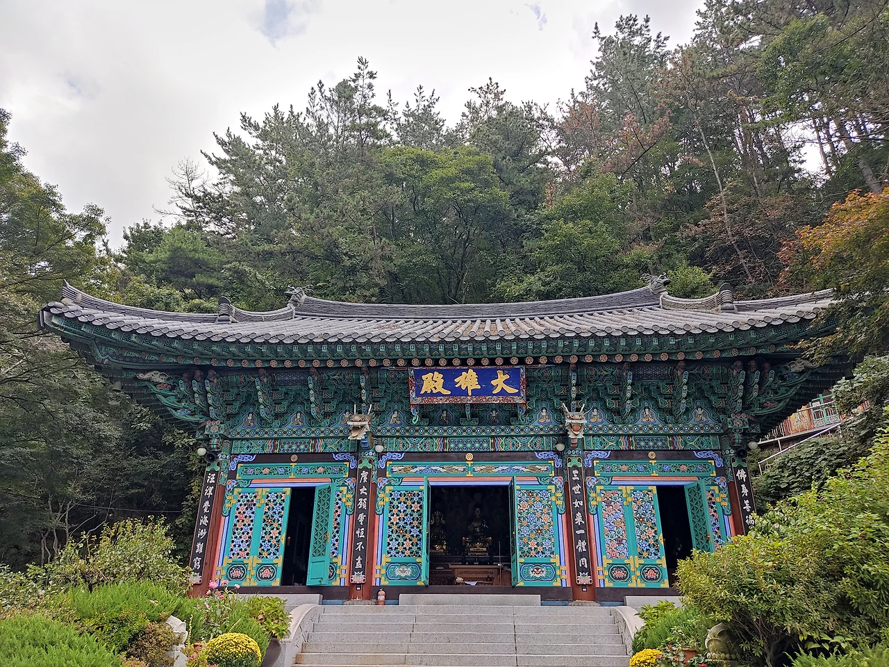 소박하고 아기자기한 길을 걸어오다가 대웅전이 보여주는 화려함의 반전이 재미있다.