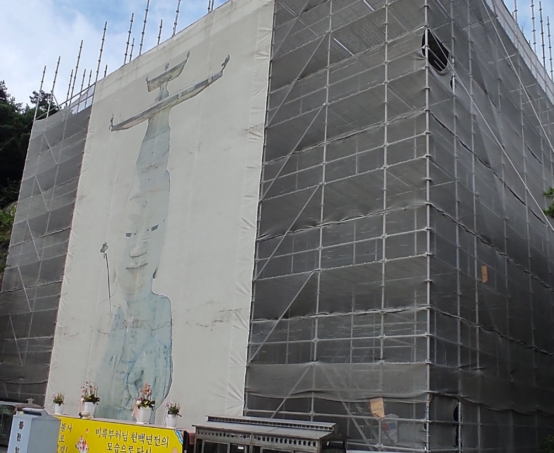 사연들을 들어주며 눈, 비, 바람 맞으며 서 계셨을 미륵, 그 많은 이를 위로해 주셨을 그 미륵불도 아프신지 수술 중이니, 위로받고 싶으신 게 틀림없다,
