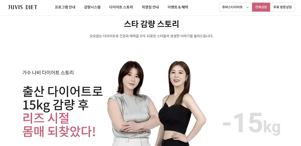 이런 심리를 잘 이용하는 업체가 있습니다. 바로 '쥬비스 다이어트'라는 브랜드인데요. 이 브랜드는 다이어트 스토리라는 브랜드 커뮤니케이션 공간을 통해 일반인의 고객 감량 스토리뿐만 아니라 스타 감량 스토리를 통해 소비자와 커뮤니케이션하고 있습니다.